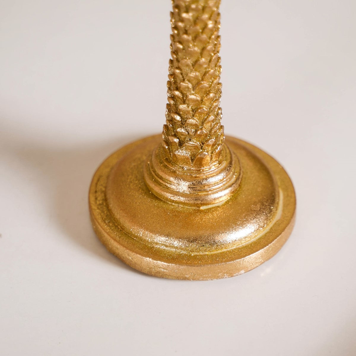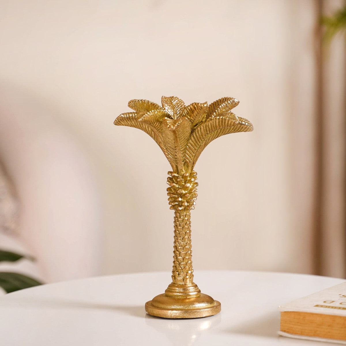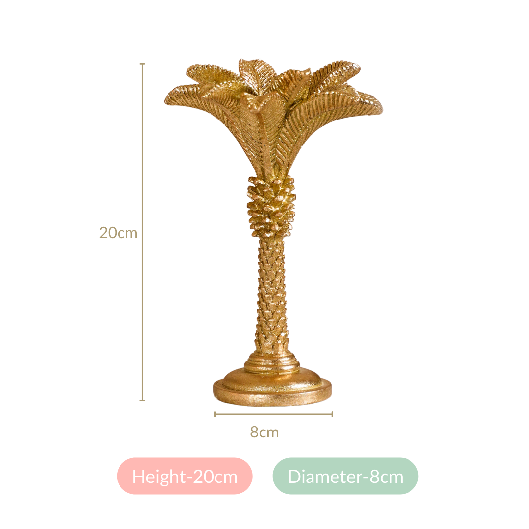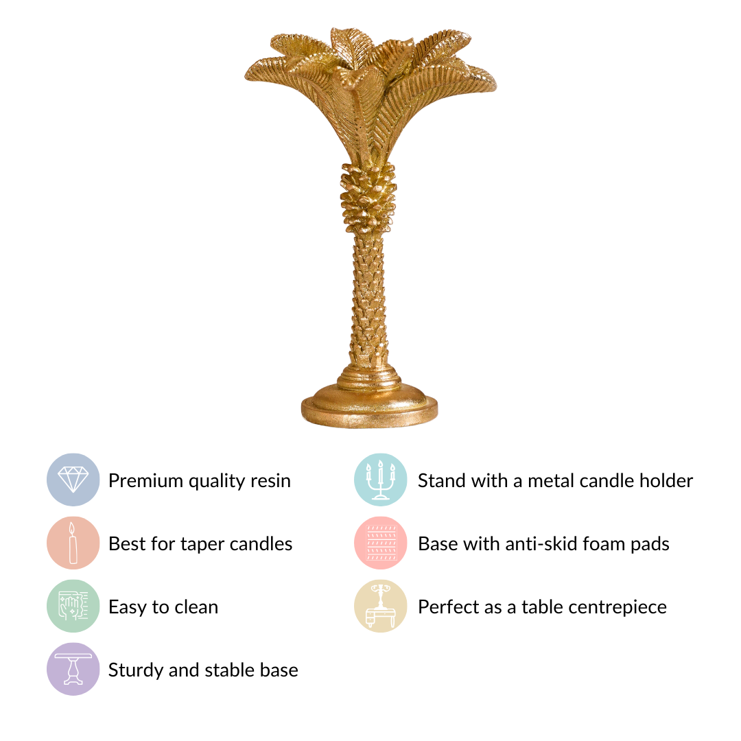 Our alluring candle stand exudes a tropical vibe, thanks to its palm tree design and is a tasteful blend of elegance and island charm. This gorgeous candle stand, which is made from premium quality materials and with great attention to detail, will transport you right away to the tropical sandy beaches and swaying coconut and palm trees. It has a metal candle holder hidden amidst the crown of palm tree leaves that's perfect for holding taper candles to create a romantic and enchanting ambience. Since the candle holder is made from premium quality resin, it guarantees unmatched durability and timeless beauty. Embrace the jungle theme and enhance the room decor with this attractive showpiece and add a bit of tropical vibe to your space.
