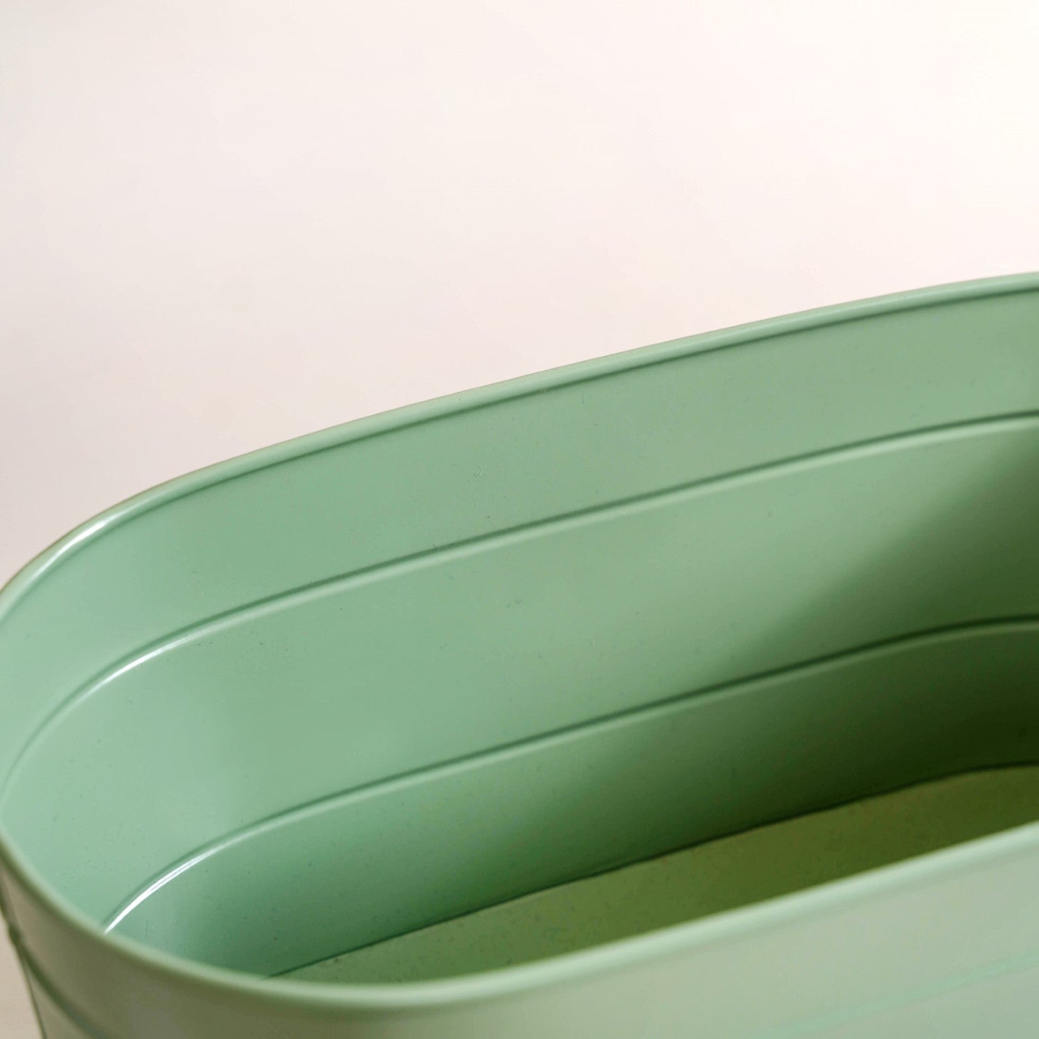 Trough Lined Oval Metal Planter Set Of 2 Sage Green