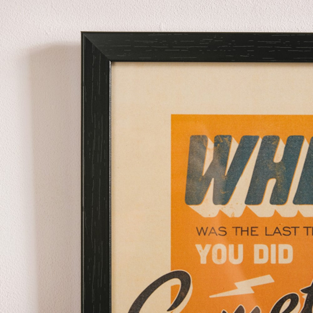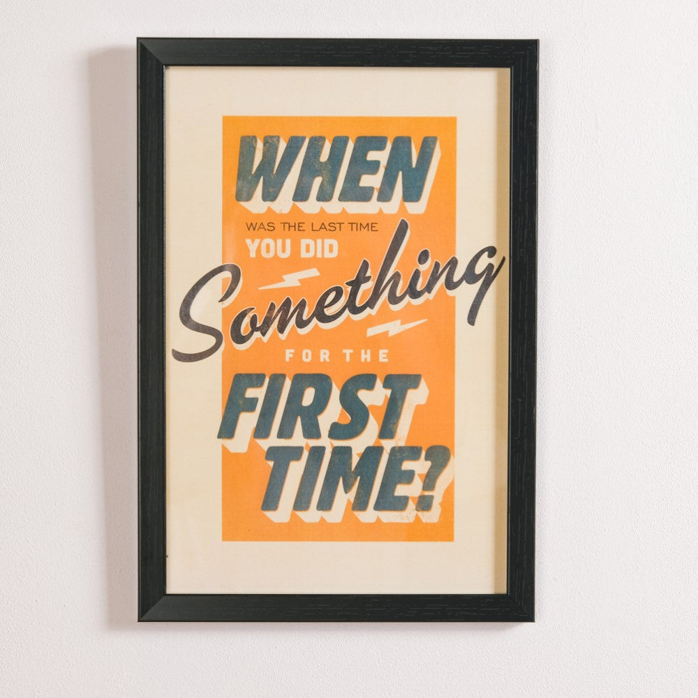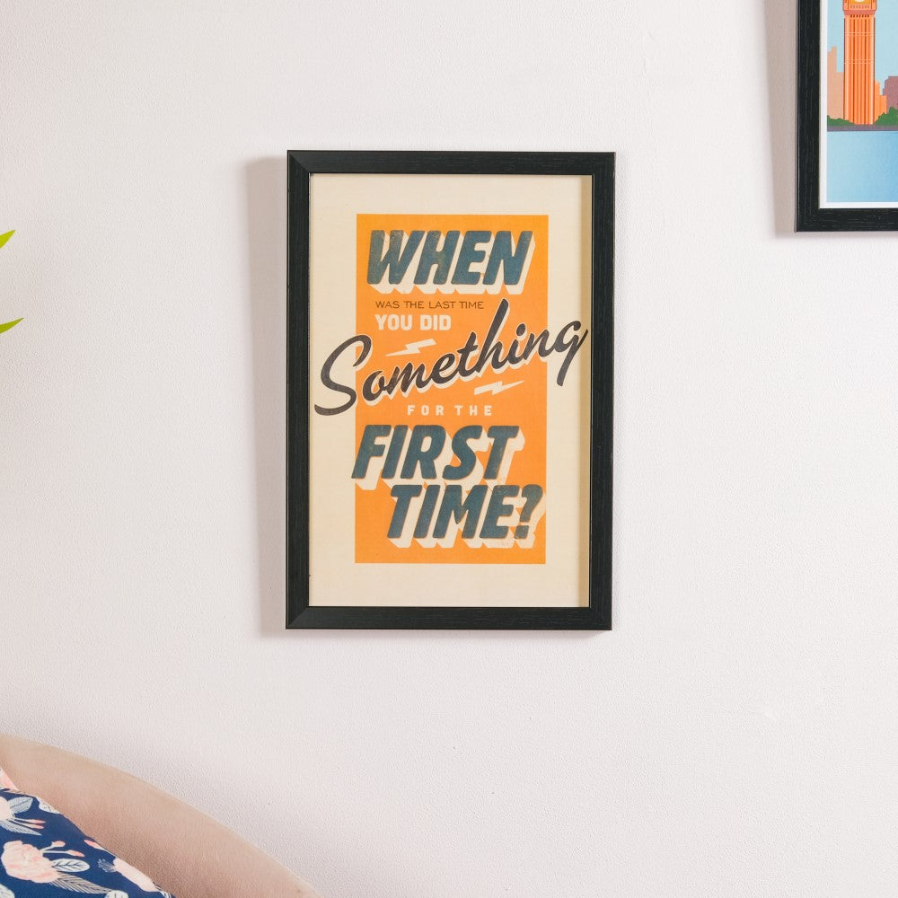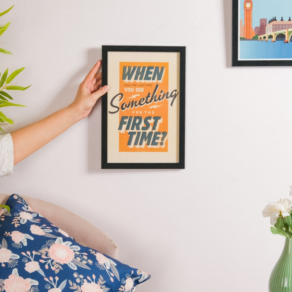 The motivational poster with a synthetic wooden frame quotes 'When was the last time you did something for the first time', inspiring one to try new things and take chances in life. The end-to-end printed poster has a black-coloured resin frame border and features a vintage-themed font and contrasting tones of yellow, beige and dark blue that looks stunning as a wall hanging decor. The framed picture is perfect to deck up any blank wall to add a modern and artistic element to the home decor or be used as an office wall decoration or as a wall art for the living room. The motivational quote wall poster has high-definition printing on paper and fits perfectly on the wall.