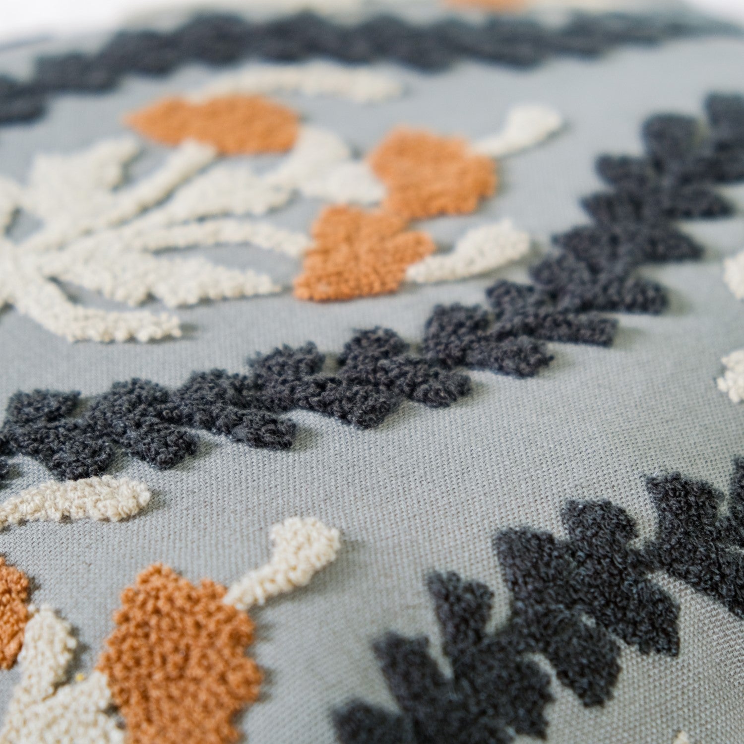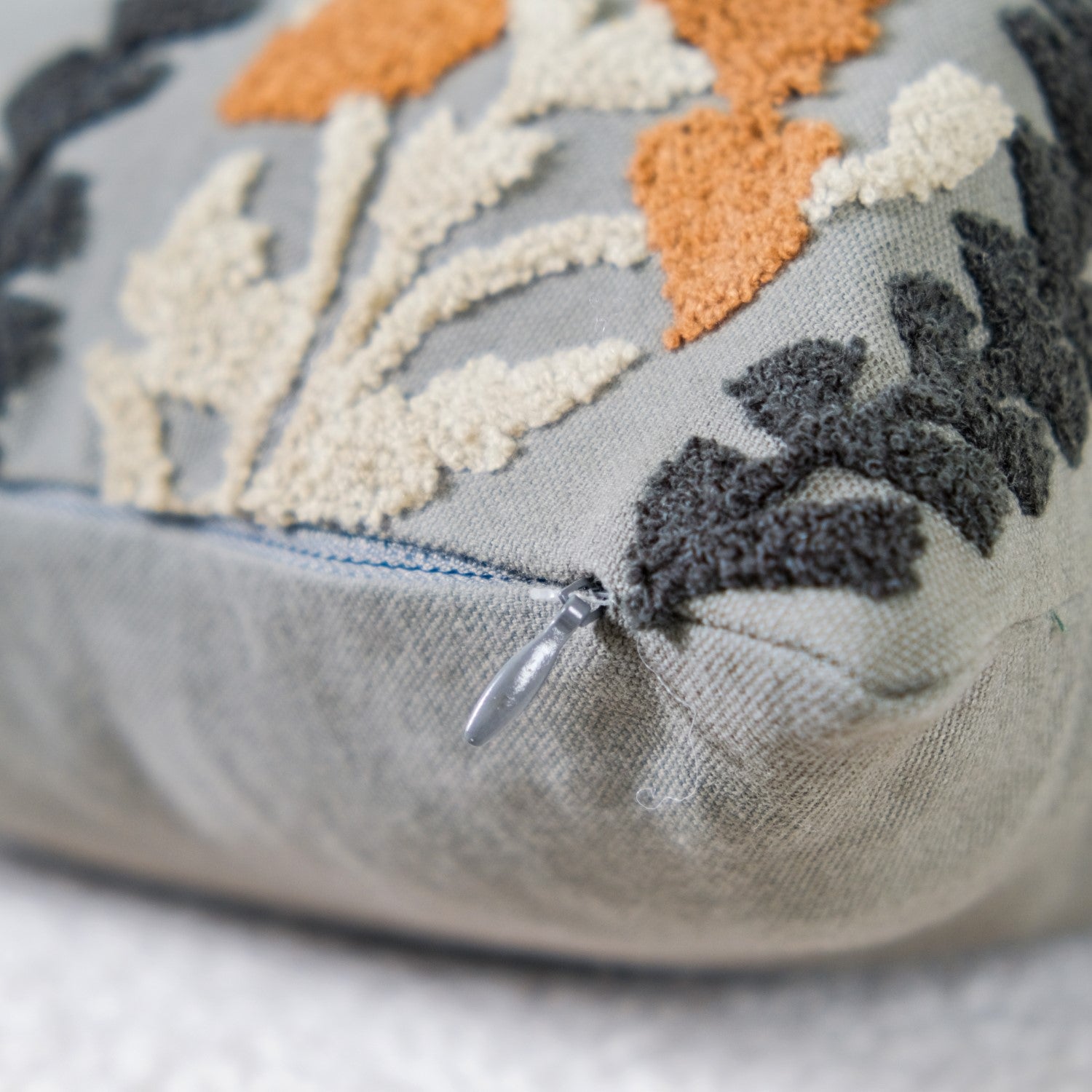 To clean the cushion cover, we would recommend a gentle handwash or dry cleaning method. This helps preserve the intricate details of the machine-embroidered design and the quality of the fabric. Avoid machine washing to prevent damage to the embroidery.