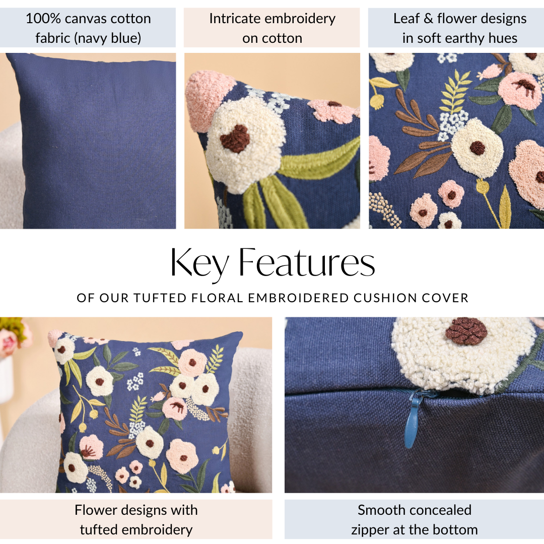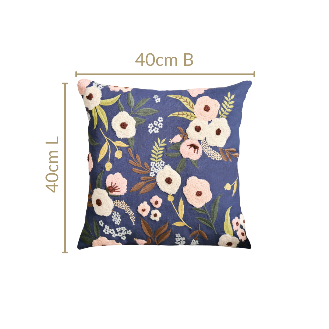 Tufted Floral Embroidered Cushion Cover 40x40cm