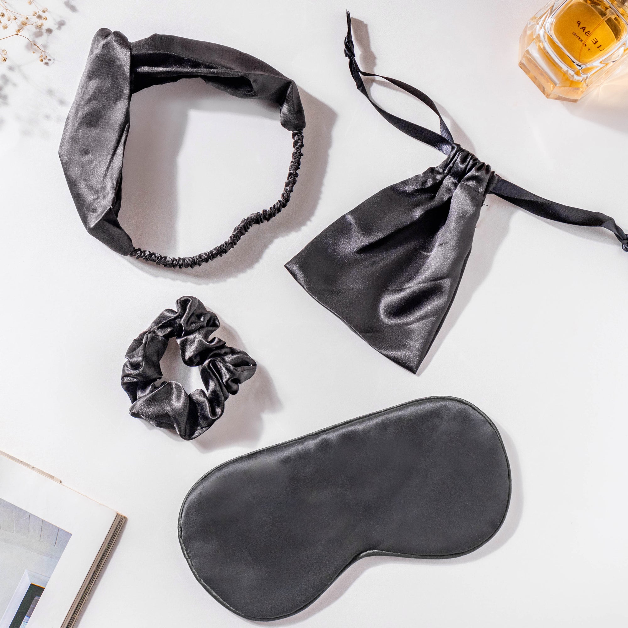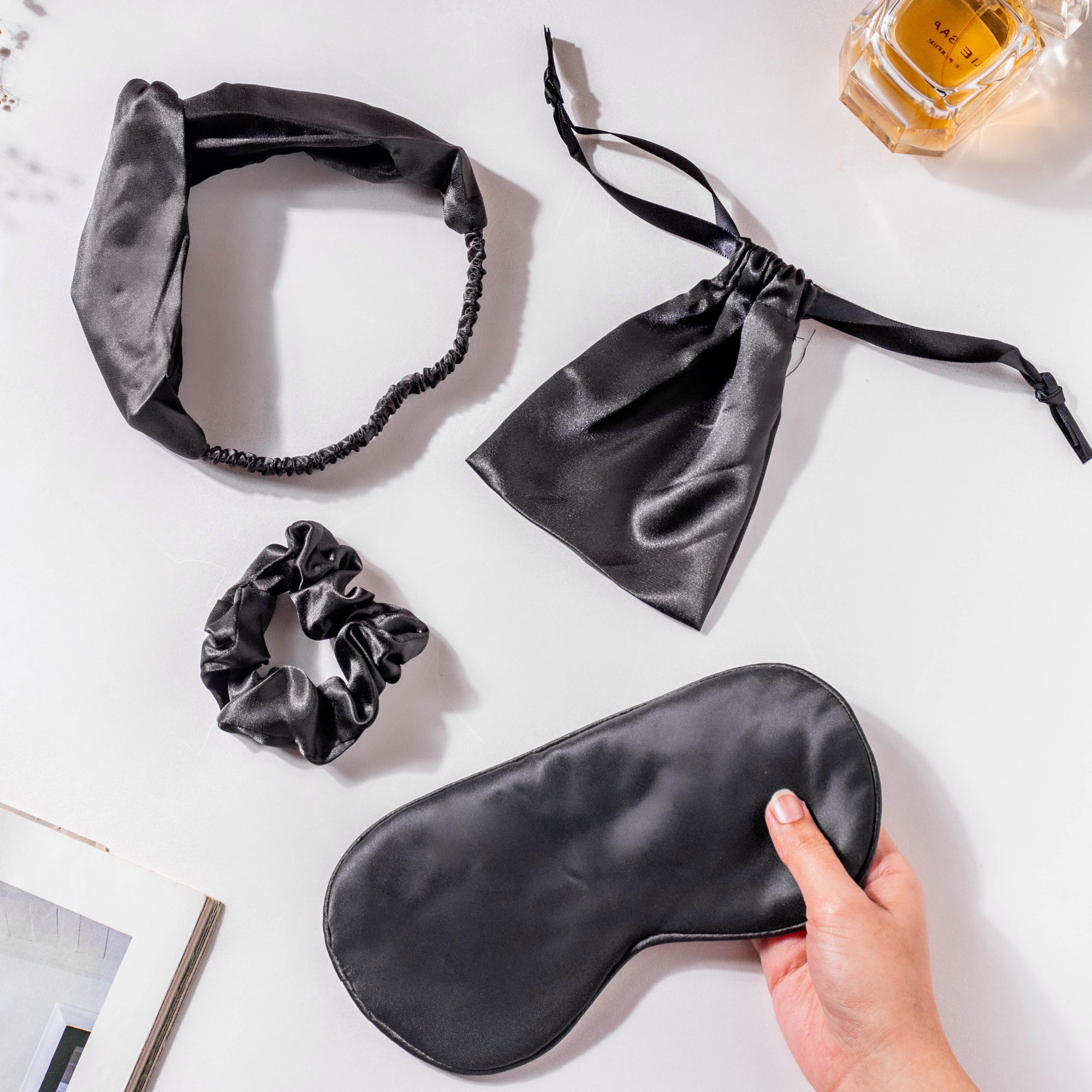 Products included: 1 set of 1 eye mask, 1 scrunchie, 1 hairband, and 1 pouch