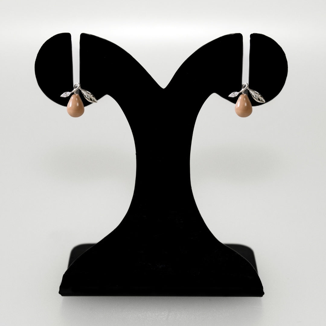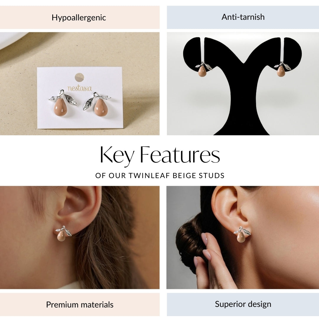A poetic blend of nature and artistry, these earrings tell a story of balance and beauty. Suspended like a dewdrop at dawn, the pear-shaped beige bead flows effortlessly from a dual-leaf design—one sculpted in radiant silver, the other in a soft stone finish. The contrast of textures mirrors the harmony between strength and delicacy, making these studs more than just an accessory.
