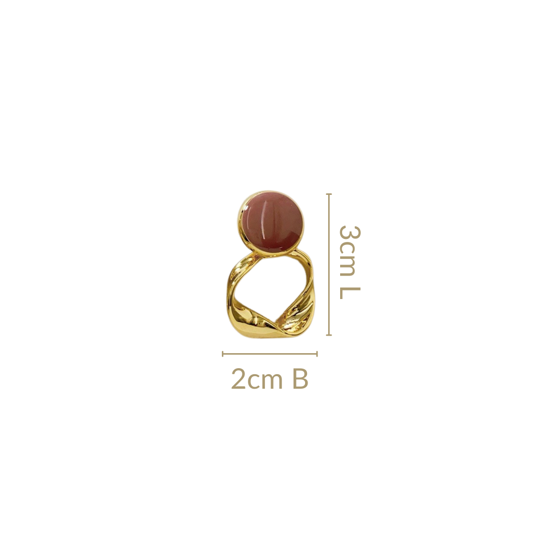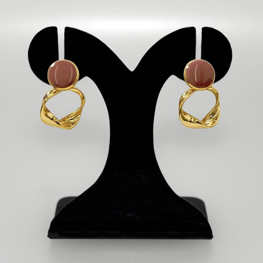 With an inclination towards bolder yet graceful design, these earrings celebrate the beauty of organic forms. Inspired by sculptural art, these earrings reimagine the natural world’s uniqueness and dynamism with a mauve enamel base framed in gold, leading to a twisted circle that dangles with fluid elegance. Every twist captures the light, adding a touch of sophistication to your look. A perfect balance of modern boldness and timeless charm.