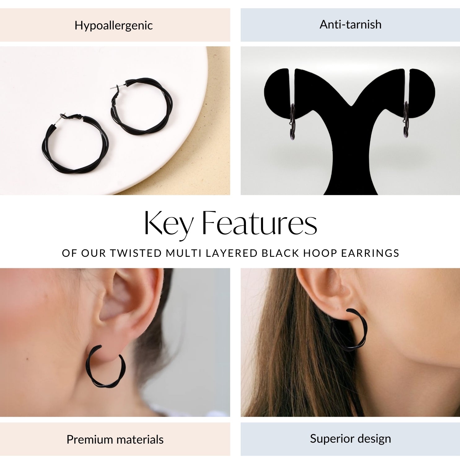 Twisted Multi Layered Black Hoop Earrings
