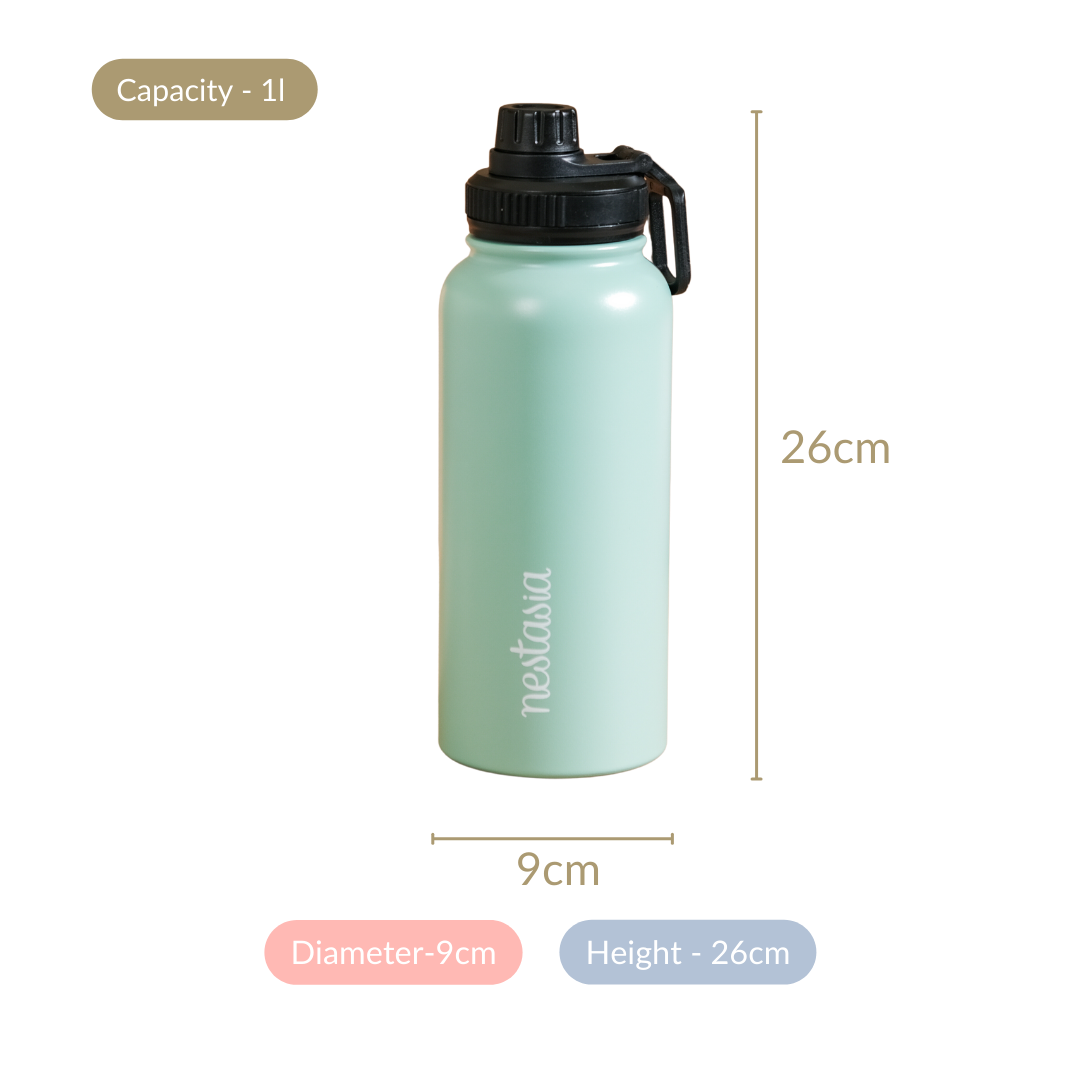 Introducing our sleek and versatile stainless steel water bottle in a refreshing mint green color, where style and functionality unite seamlessly. Crafted with meticulous precision, this bottle features a BPA-free lid with a convenient spout for on-the-go sipping ease. What sets it apart is its sophisticated powder matte finish, delivering not just a smooth-to-touch experience but also resistance against unsightly fingerprints and bothersome scratches, ensuring it looks brand new, sip after sip. With advanced insulation technology, it maintains your beverages at the perfect temperature.