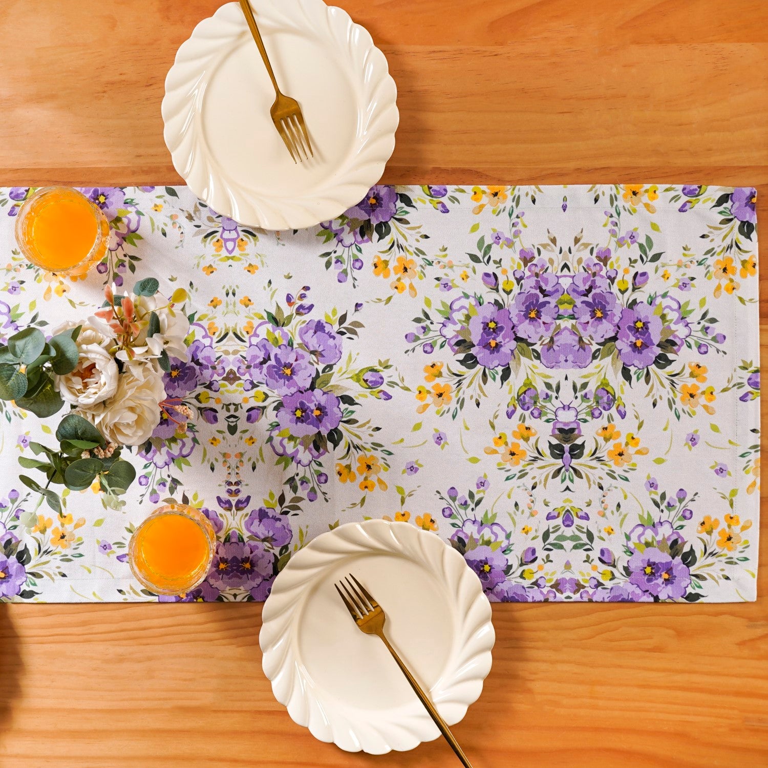 Discover the perfect standout piece of your table linen collection! This 8 seater table runner combines an exceptional lavender floral print with a premium cotton feel to create a truly elegant setting.