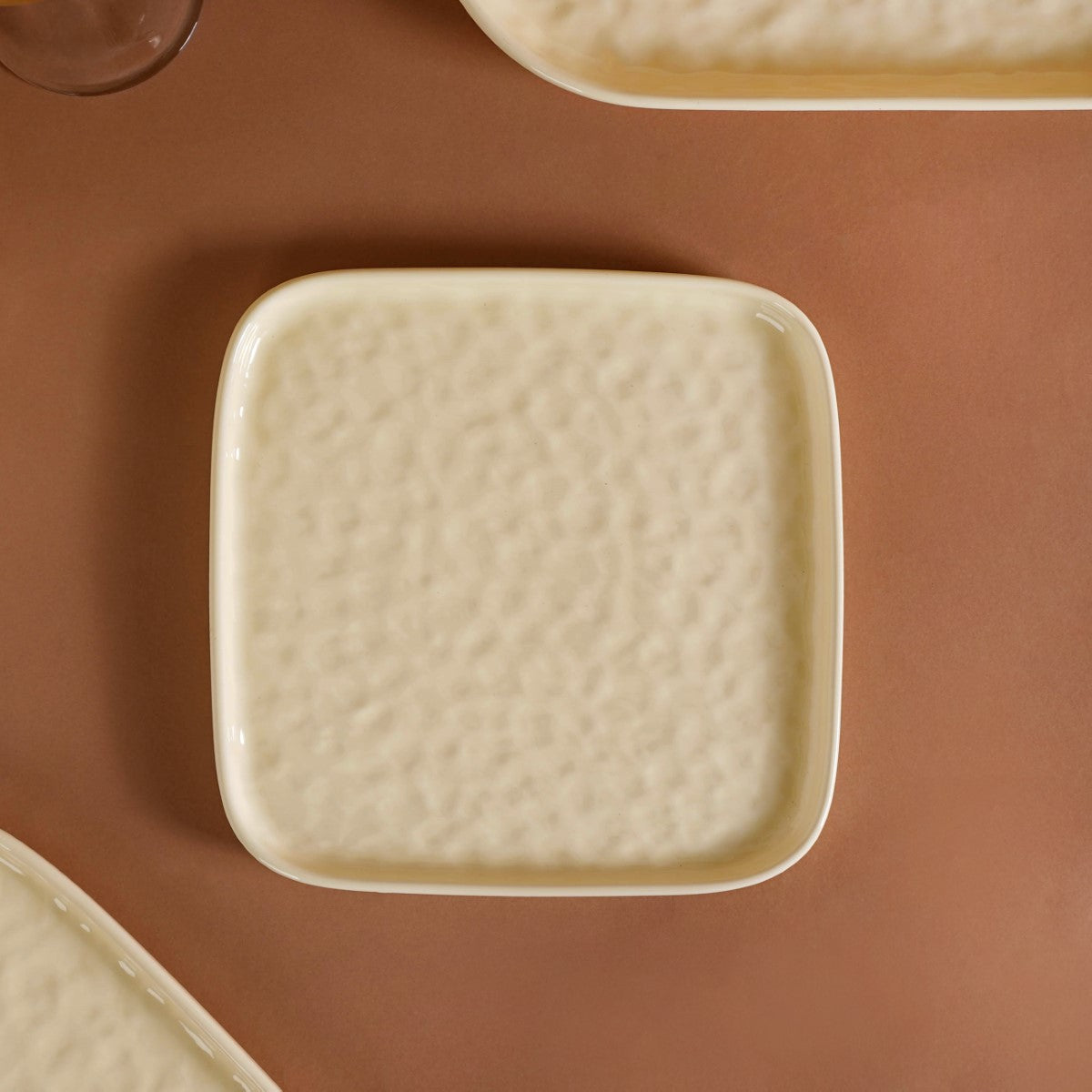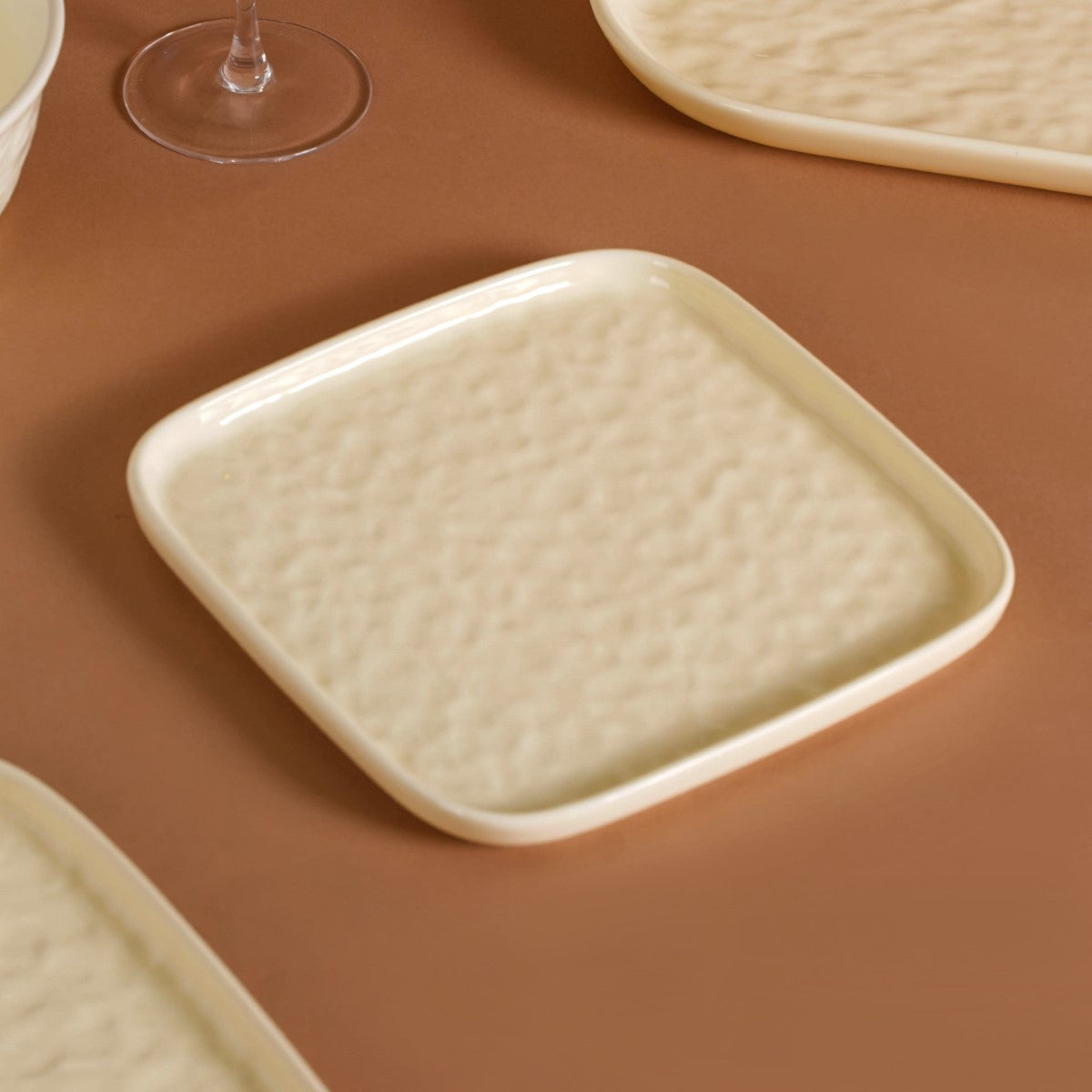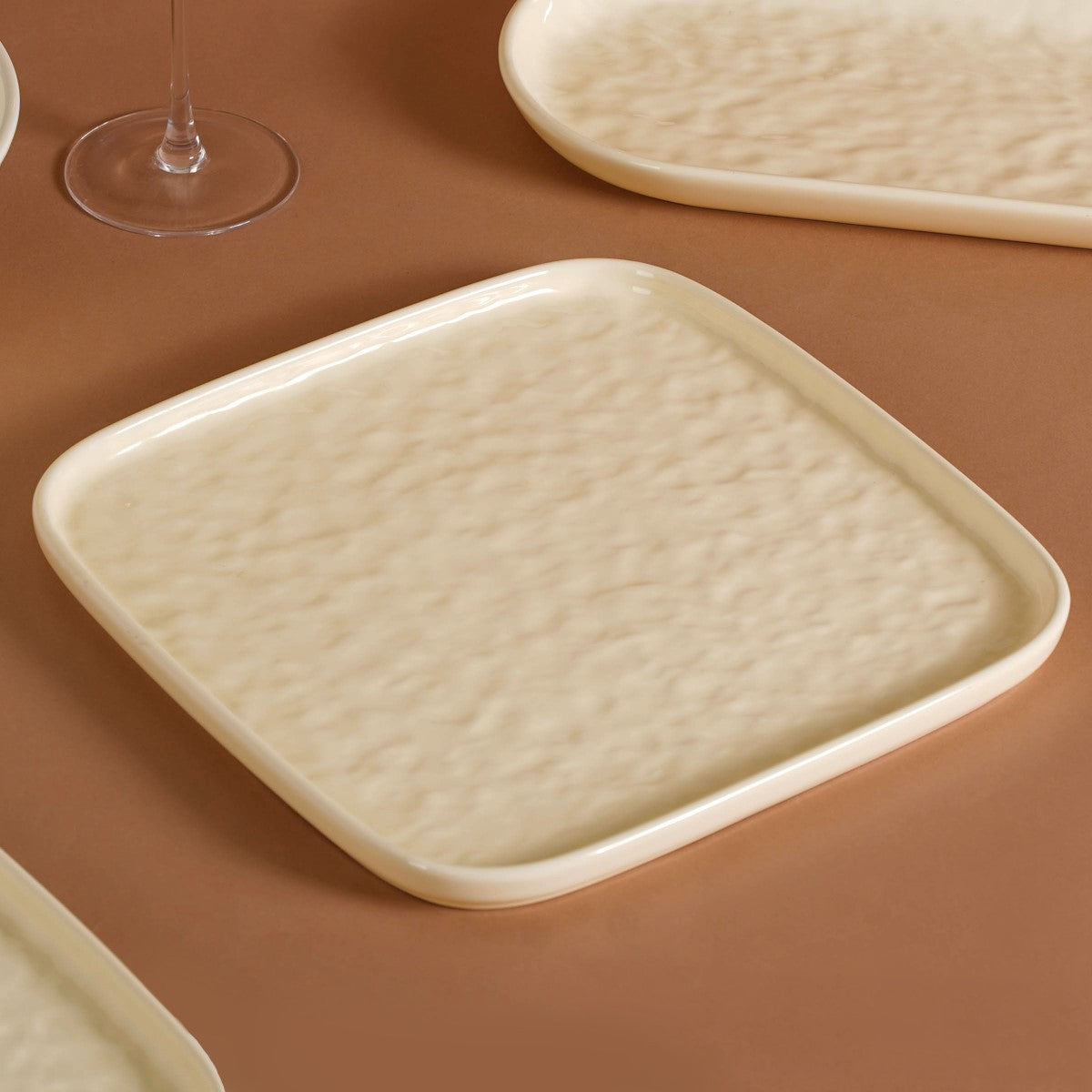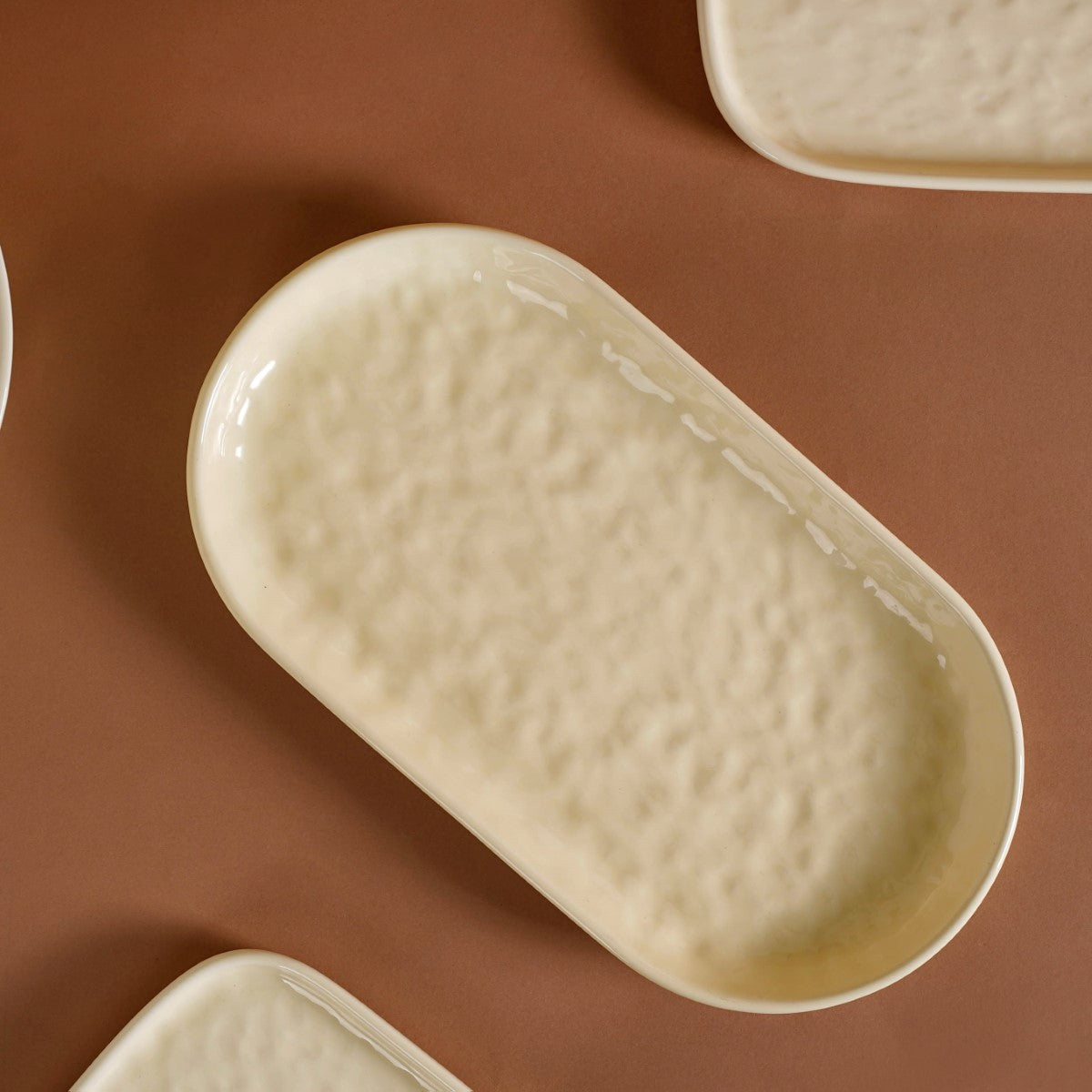 The dinner sets feature a hand-glazed surface with a scallop-shaped design and textured Moroccan art motifs. This combination creates a unique and tactile texture that not only enhances the visual appeal of the dinnerware but also provides an interesting and pleasing feel to the touch. The hand-glazed finish adds a smooth, glossy texture to the surface, making it easy to clean and maintain while adding a touch of elegance to your dining experience. The textured Moroccan art motifs offer a subtle and captivating tactile dimension to the dinnerware, adding depth and interest to each piece. In summary, the texture of the dinner sets is a delightful blend of smooth hand-glazing and textured art motifs, making them not only visually appealing but also a pleasure to handle and use.