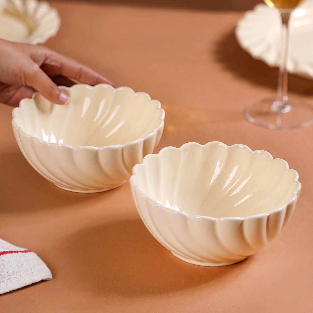 Vanilla White Scallop Luxury Serving Bowls Set Of 2 850ml