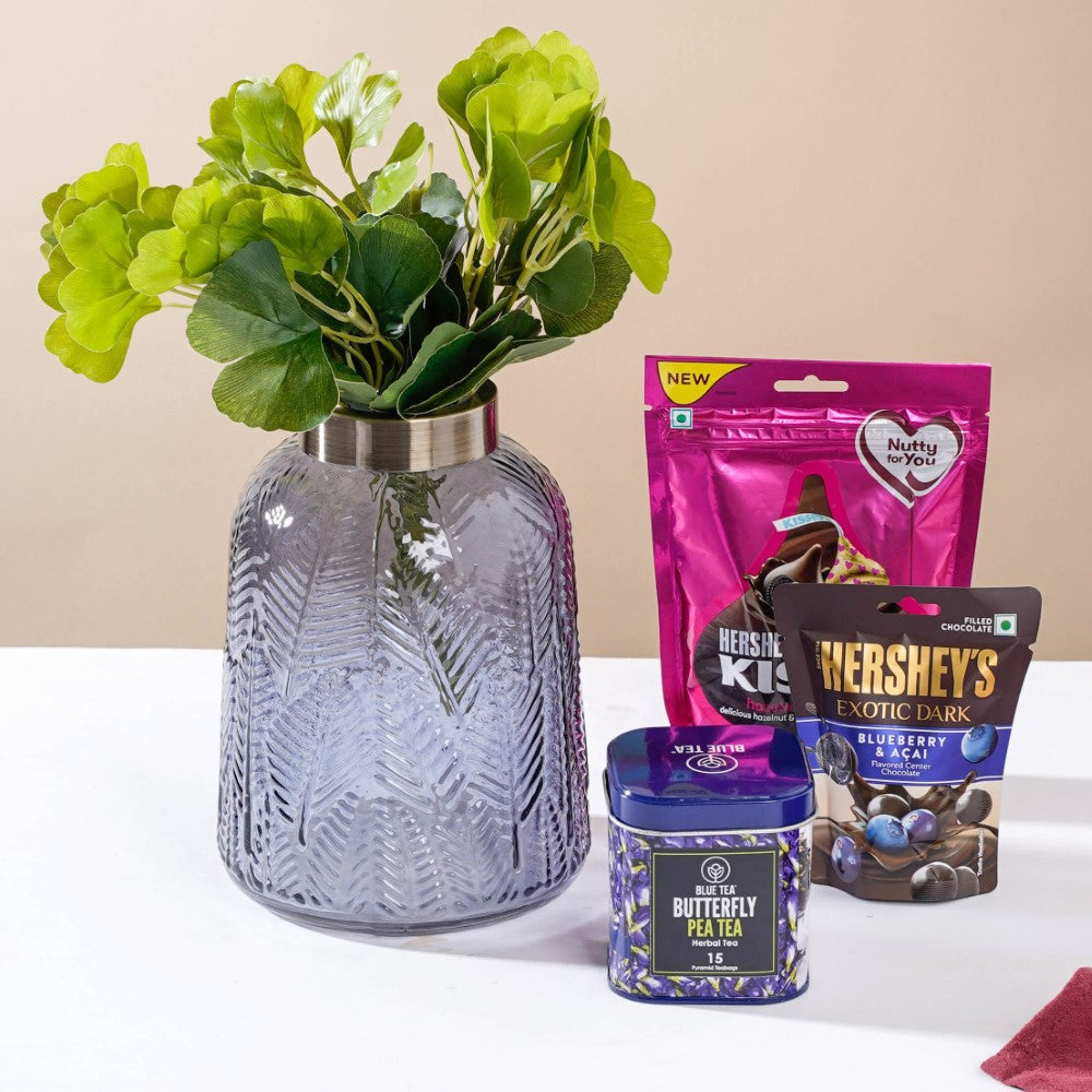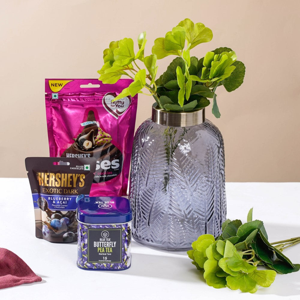 A festive special hamper is incomplete without tasty treats and desserts. For the sweet cravings and chocolate connoisseurs, the assorted Hershey's chocolates are sure to be the favourites, and to balance the sweetness, a pack of soothing Blue tea is present. Gift sets are non-returnable.