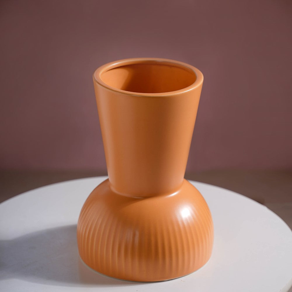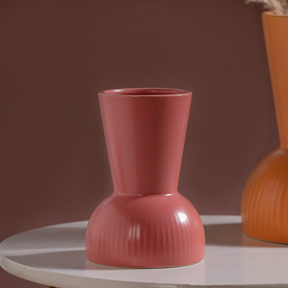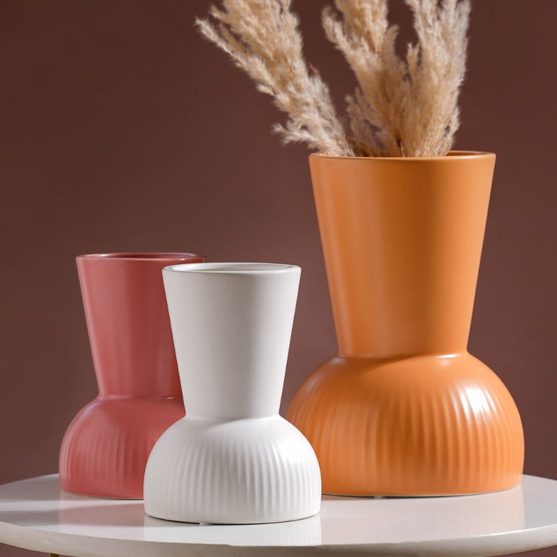 Vases for home decor, available in three different variants, are unique pieces with a modern design. The vases are curved toward the foot and takes a conical shape towards the neck and mouth. The decor vases are apt for keeping fresh flowers with some water filled inside, since the flat foot can provide water to all the flowers and keep them fresh for a longer time.