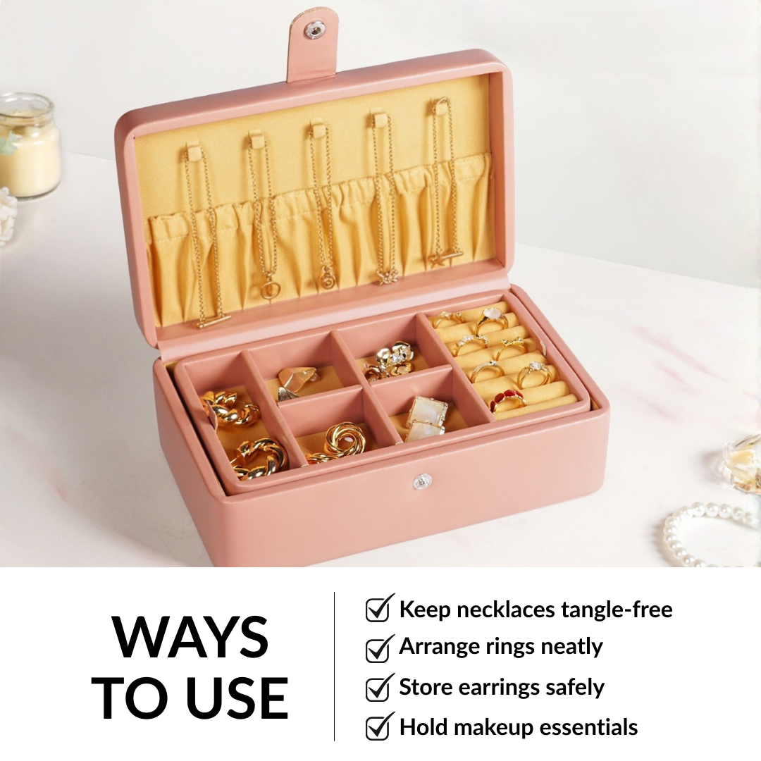 Benefits: This organiser is incredibly useful for keeping your precious items tangle-free and protected from dust or scratches. Its compact, travel-friendly size means you can securely pack your favourite pieces for trips without adding bulk. The durable snap closure ensures everything stays in place, making daily accessorising quick and effortless.