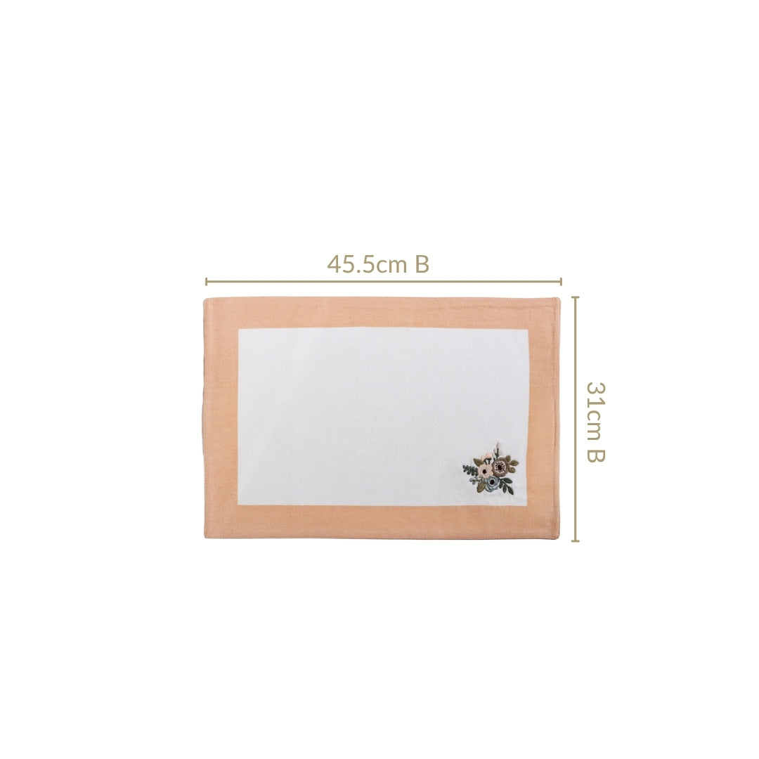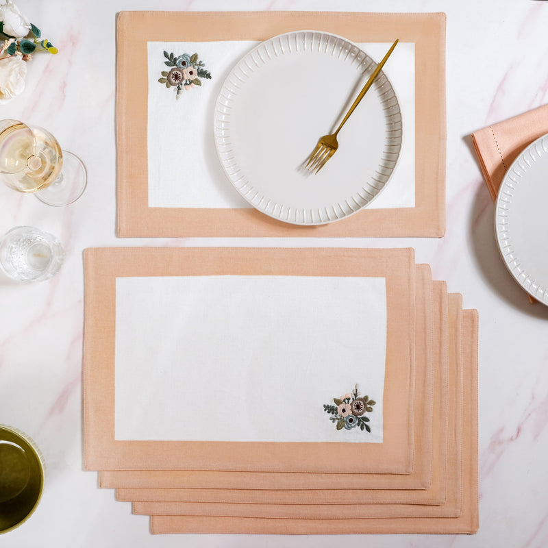 Bring charm and character to your dining setup with these soft peach placemats. Featuring delicate floral embroidery on one corner, these table mats blend artisanal detailing with a warm, cosy vibe, perfect for everything from everyday meals to elegant dinner gatherings.