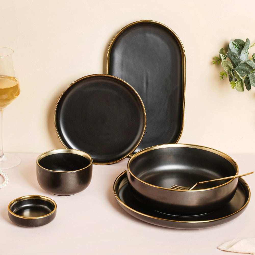 Nestip: The Vera black dinner set will look extravagant when paired with golden cutlery.