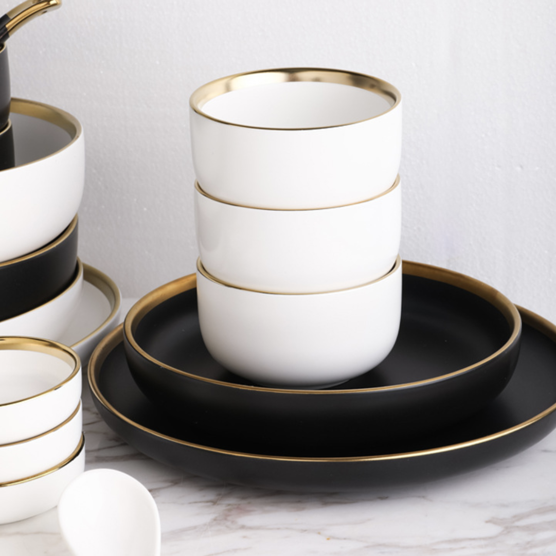 The gold-detailed Vera bowls and plates can be coupled with gold-colored cutlery set from our collection. Our cutlery collection is showcased in the 'Dining' category and gives you tons of options to choose from, be it spoons, forks, knives, pizza cutters, dumpling maker, or anything else you need.