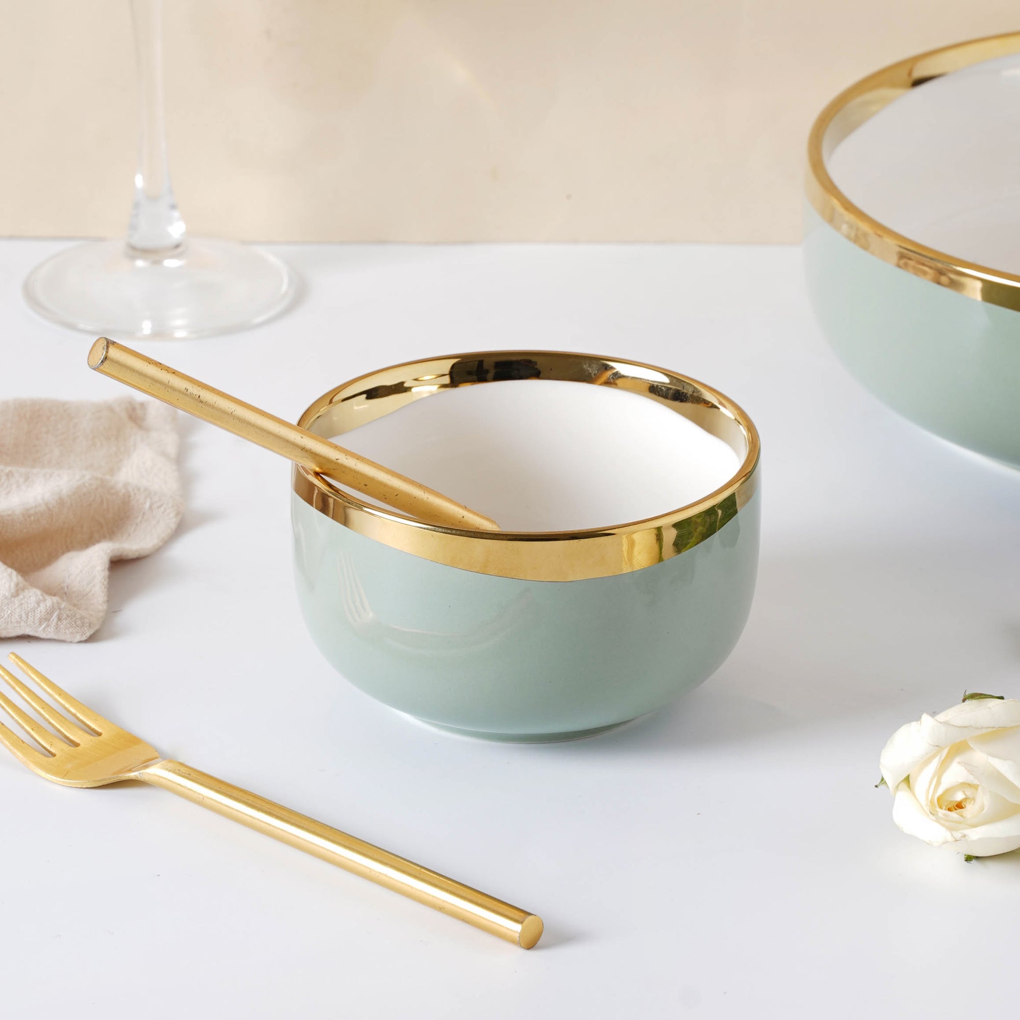 The gold-detailed Vera bowls and plates can be coupled with gold-colored cutlery set from our collection. Our cutlery collection is showcased in the 'Dining' category and gives you tons of options to choose from, be it spoons, forks, knives, pizza cutters, dumpling maker, or anything else you need.