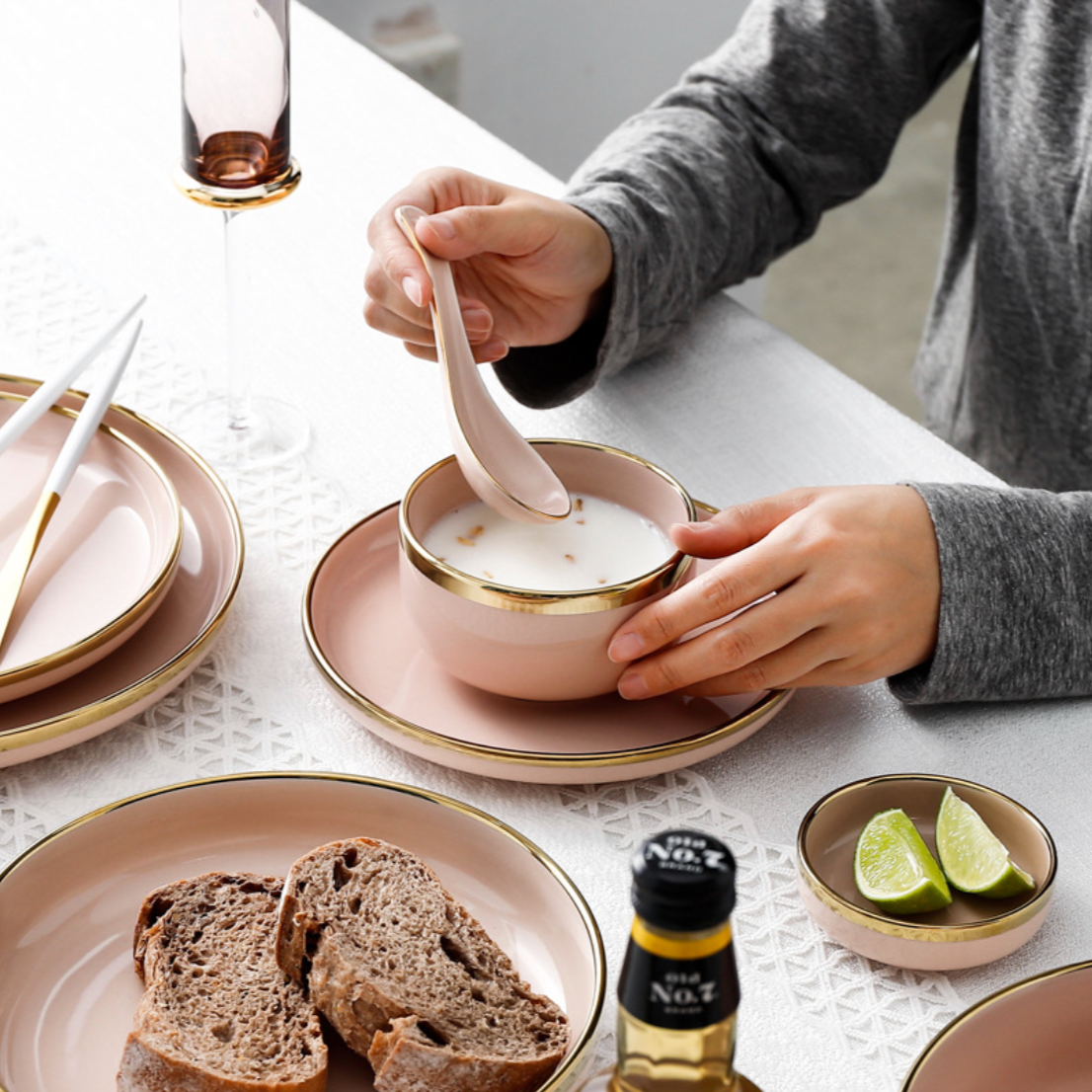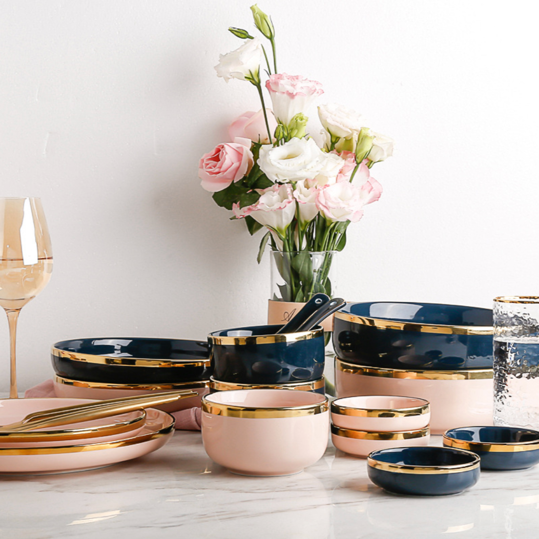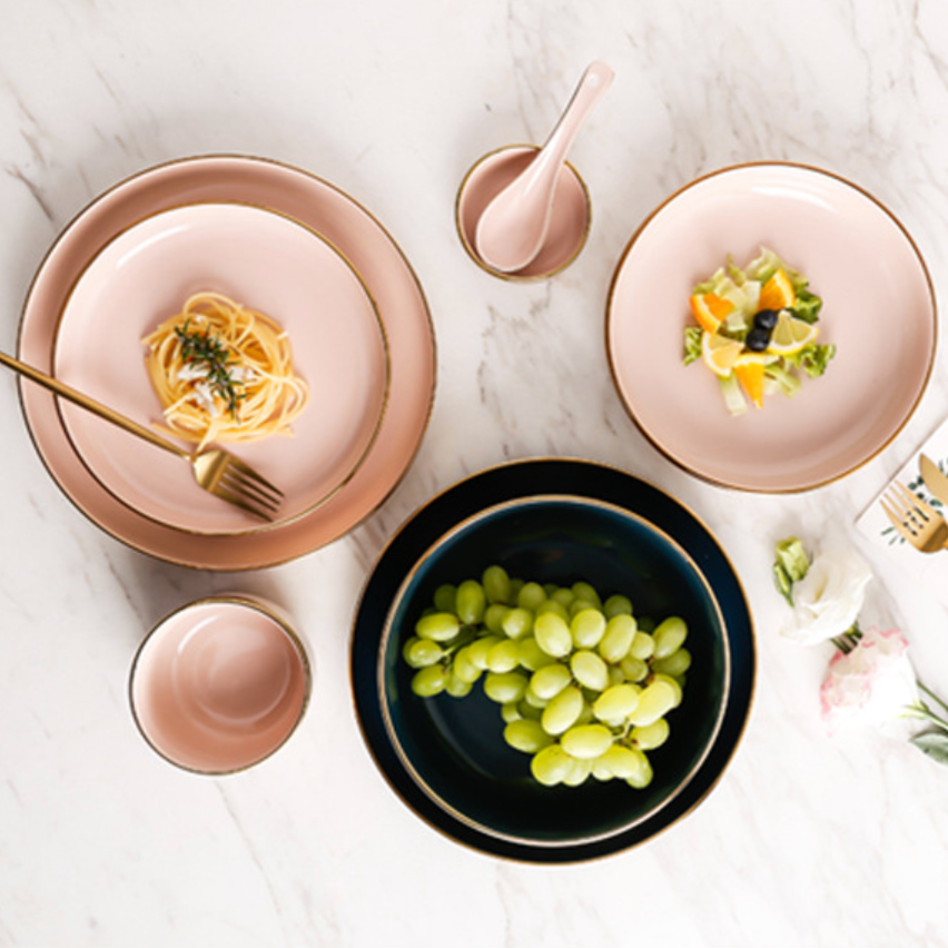 A versatile serveware collection is always in great demand. Ceramic bowls, plates, and dinner sets are an evergreen trend in the world of crockery. Our Vera ceramic plates, ceramic bowls, and ceramic dinner set are brought from the hands and potter’s wheel of the artisans to your dining table. The green, black, pink, and white colored collection is embellished with gold detailing and is handpicked to serve you the best in dinnerware.
