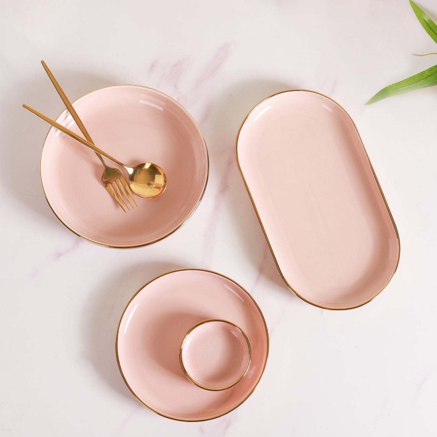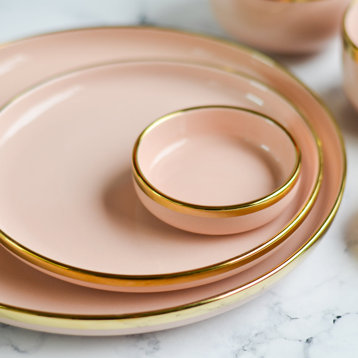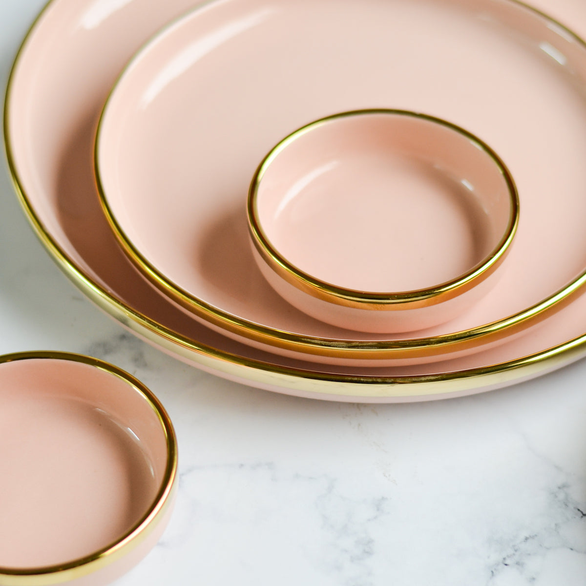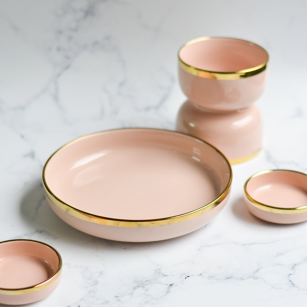 A versatile serveware collection is always in great demand. Ceramic bowls, plates, and dinner sets are an evergreen trend in the world of crockery. Our Vera ceramic plates, ceramic bowls, and ceramic dinner set are brought from the hands and potter’s wheel of the artisans to your dining table. The green, black, pink, and white colored collection is embellished with gold detailing and is handpicked to serve you the best in dinnerware.
