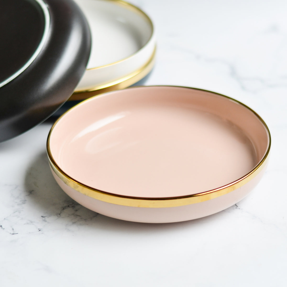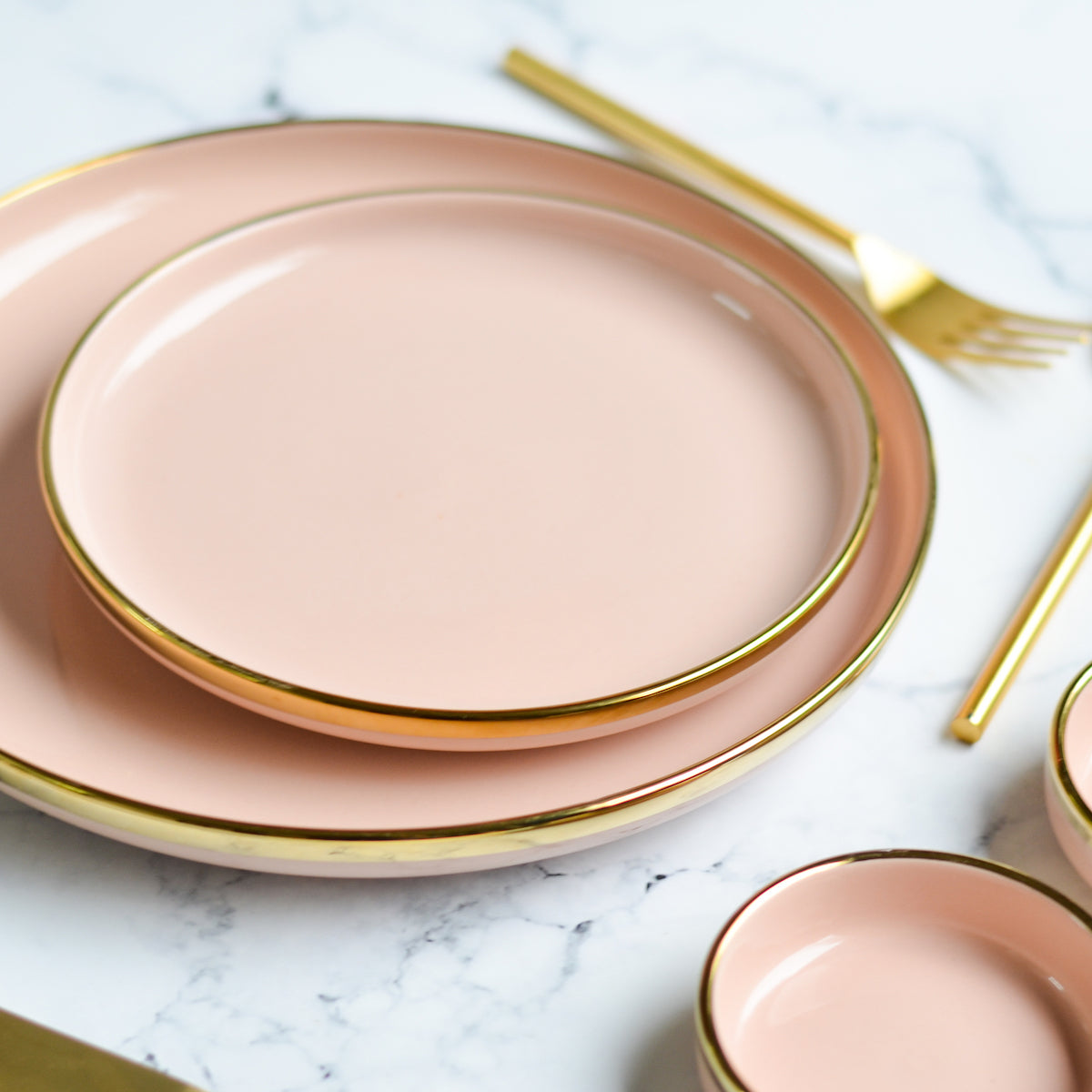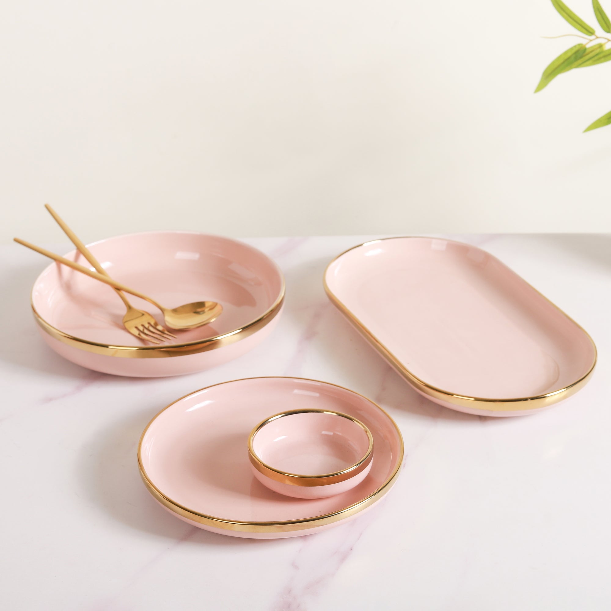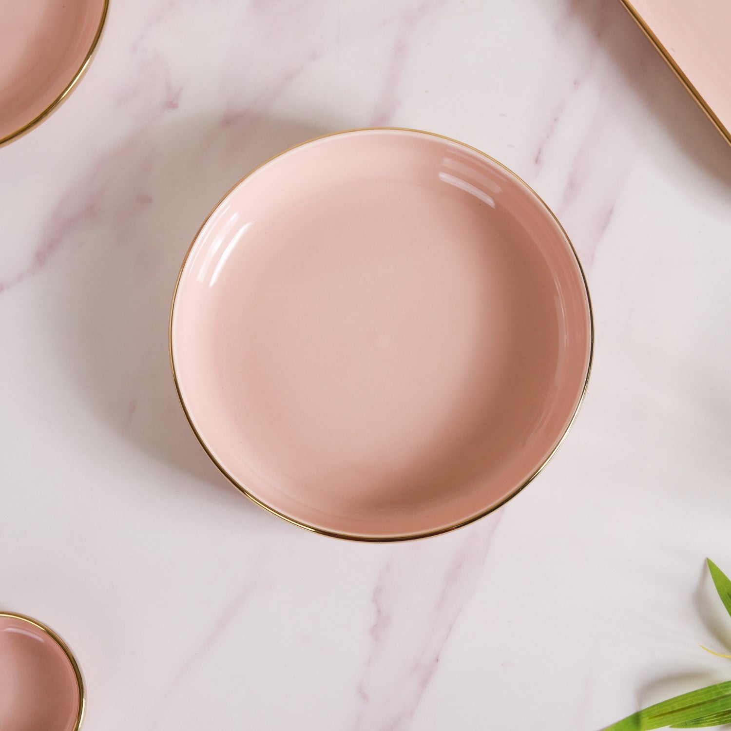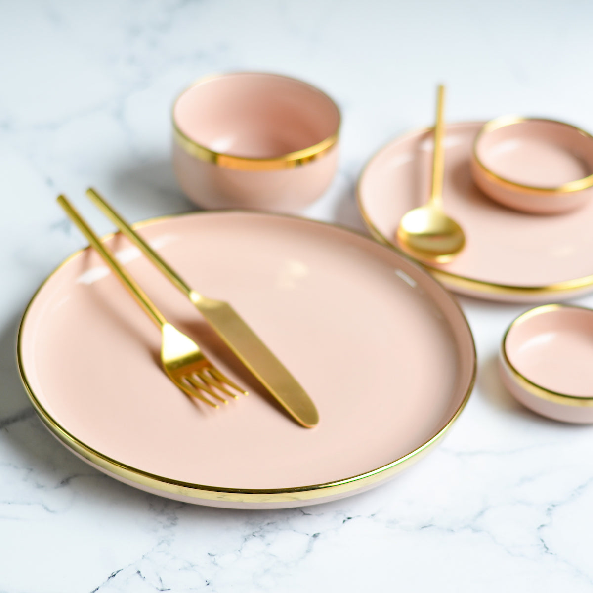 A versatile serveware collection is always in great demand. Ceramic bowls, plates, and dinner sets are an evergreen trend in the world of crockery. Our Vera ceramic plates, ceramic bowls, and ceramic dinner set are brought from the hands and potter’s wheel of the artisans to your dining table. The green, black, pink, and white colored collection is embellished with gold detailing and is handpicked to serve you the best in dinnerware.