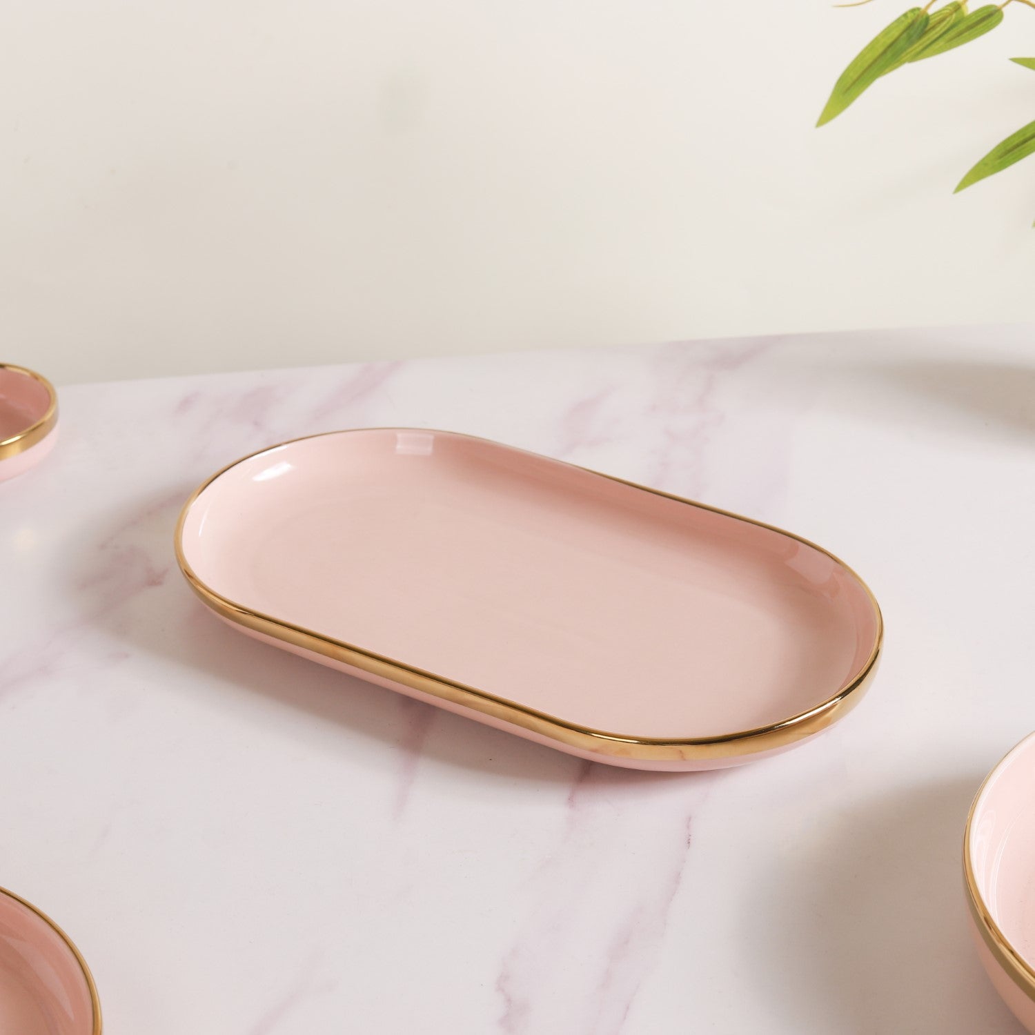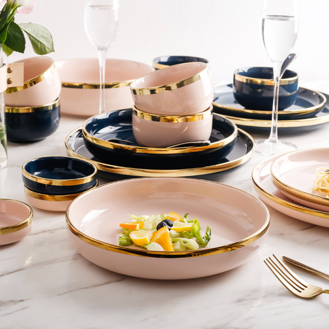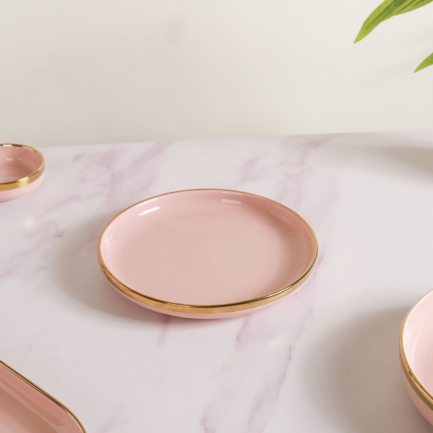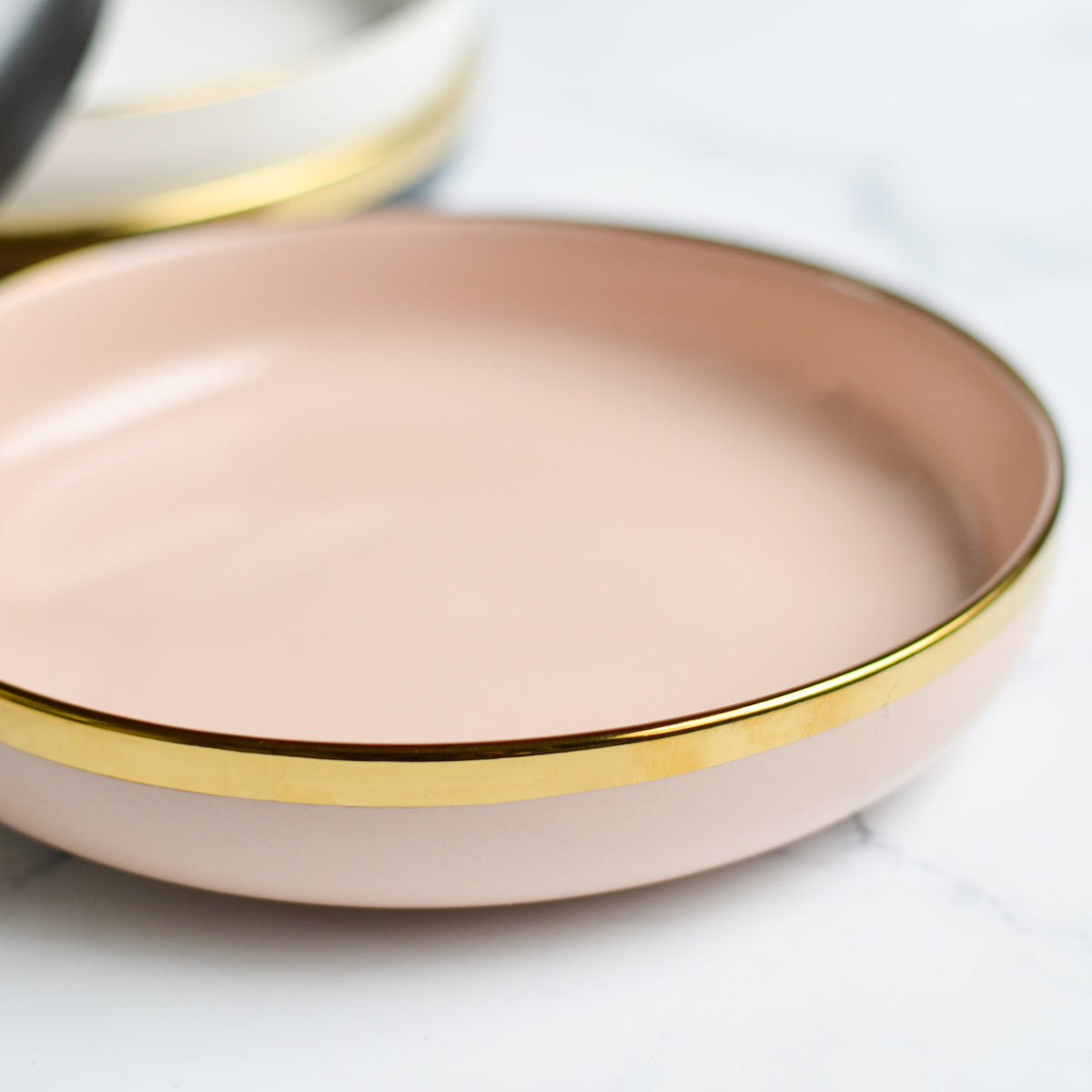 A versatile serveware collection is always in great demand. Ceramic bowls, plates, and dinner sets are an evergreen trend in the world of crockery. Our Vera ceramic plates, ceramic bowls, and ceramic dinner set are brought from the hands and potter’s wheel of the artisans to your dining table. The green, black, pink, and white colored collection is embellished with gold detailing and is handpicked to serve you the best in dinnerware.