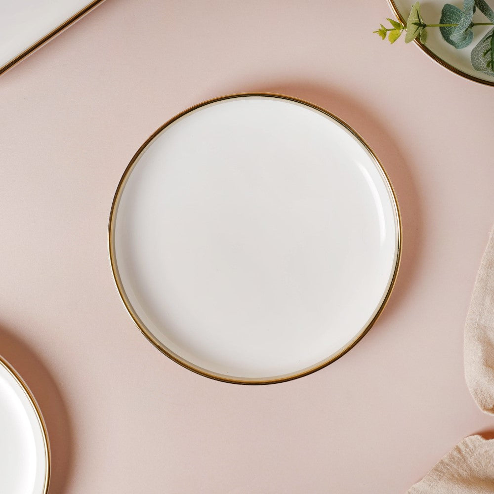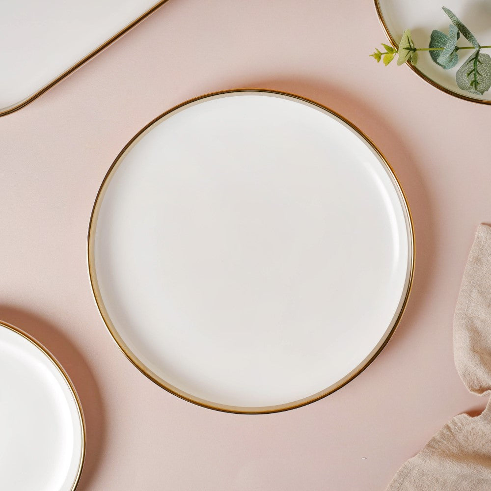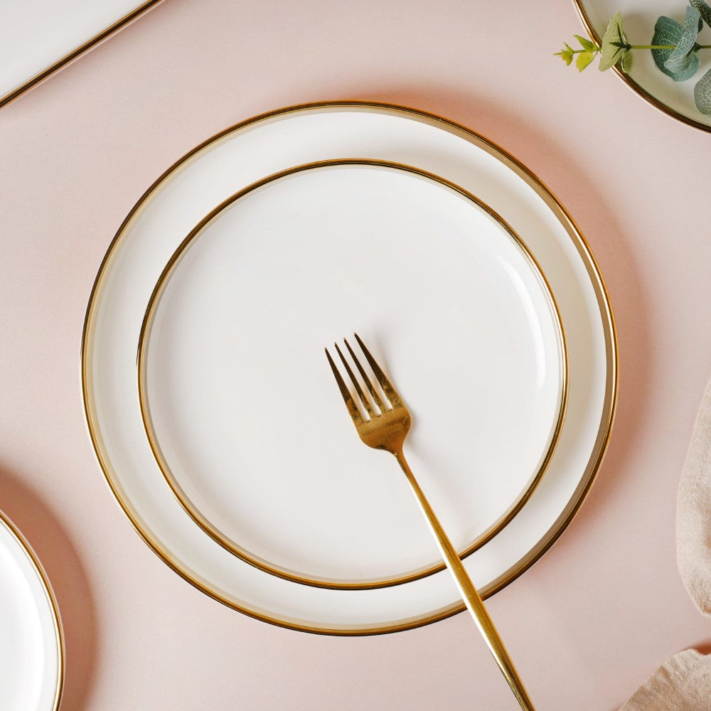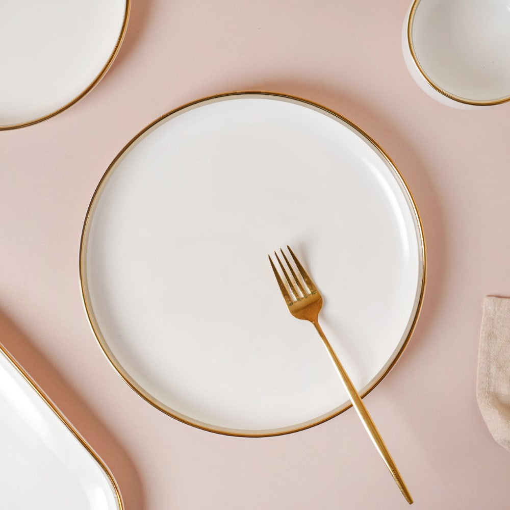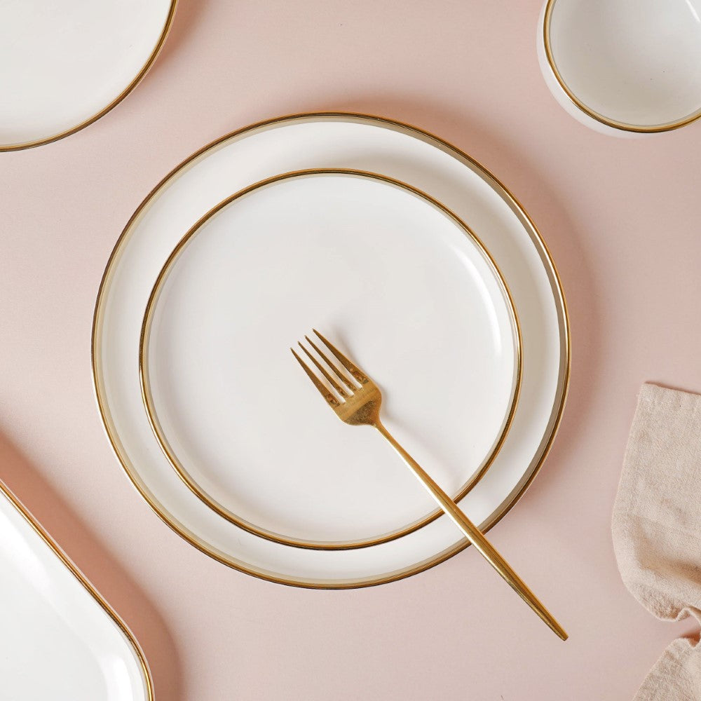 The gold-detailed Vera bowls and plates can be coupled with gold-colored cutlery set from our collection. Our cutlery collection is showcased in the 'Dining' category and gives you tons of options to choose from, be it spoons, forks, knives, pizza cutters, dumpling maker, or anything else you need.