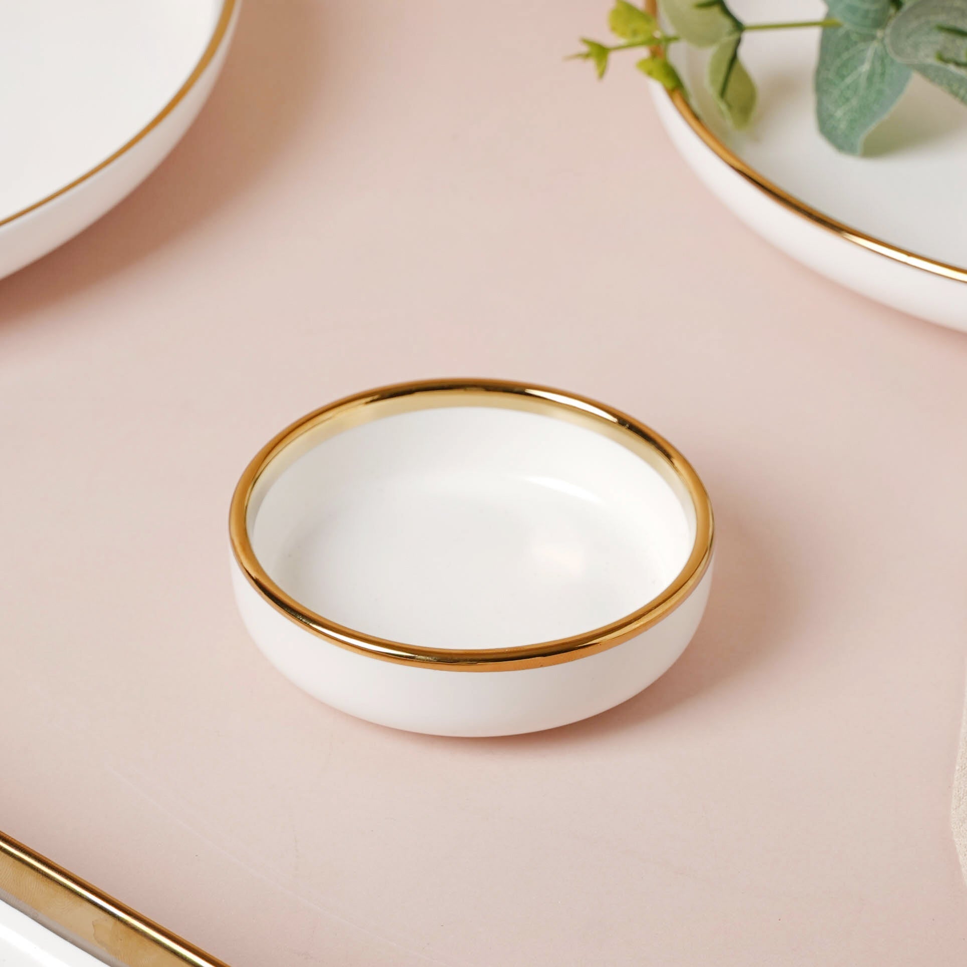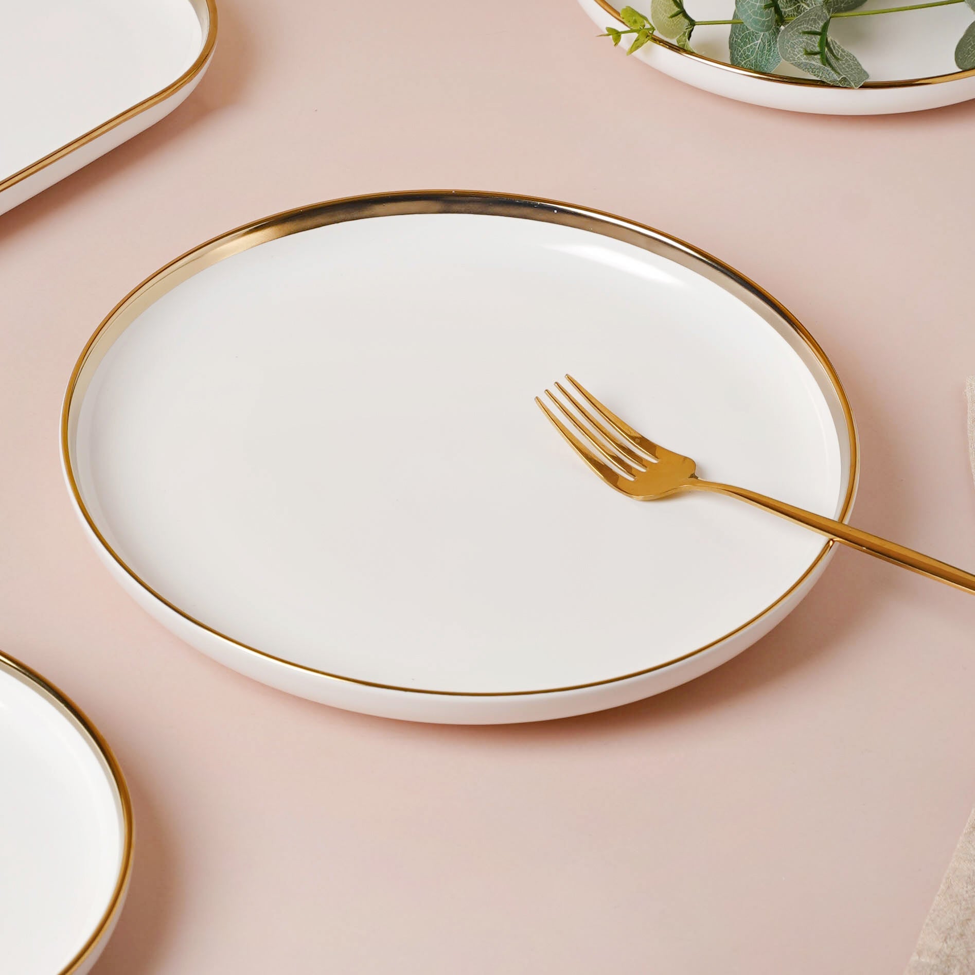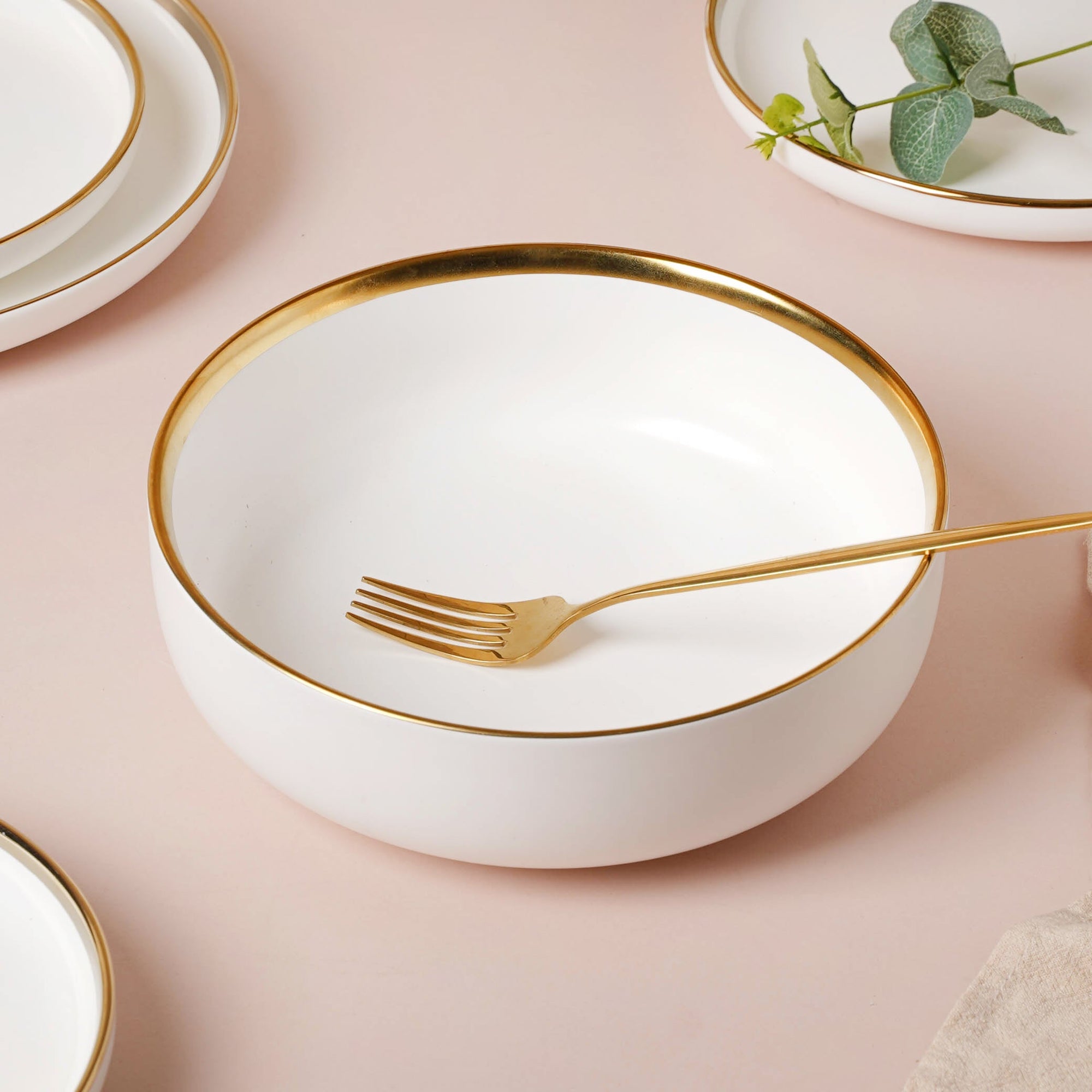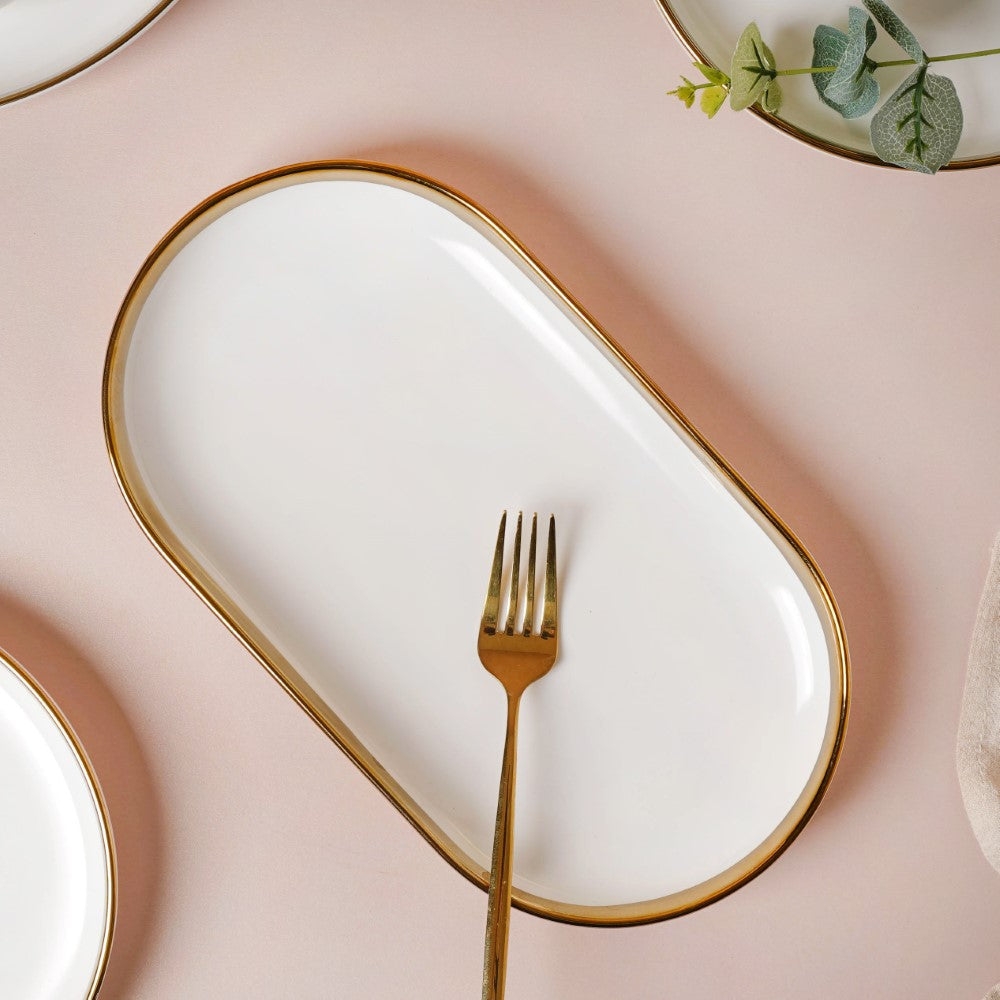 The gold-detailed Vera bowls and plates can be coupled with gold-colored cutlery set from our collection. Our cutlery collection is showcased in the 'Dining' category and gives you tons of options to choose from, be it spoons, forks, knives, pizza cutters, dumpling maker, or anything else you need.