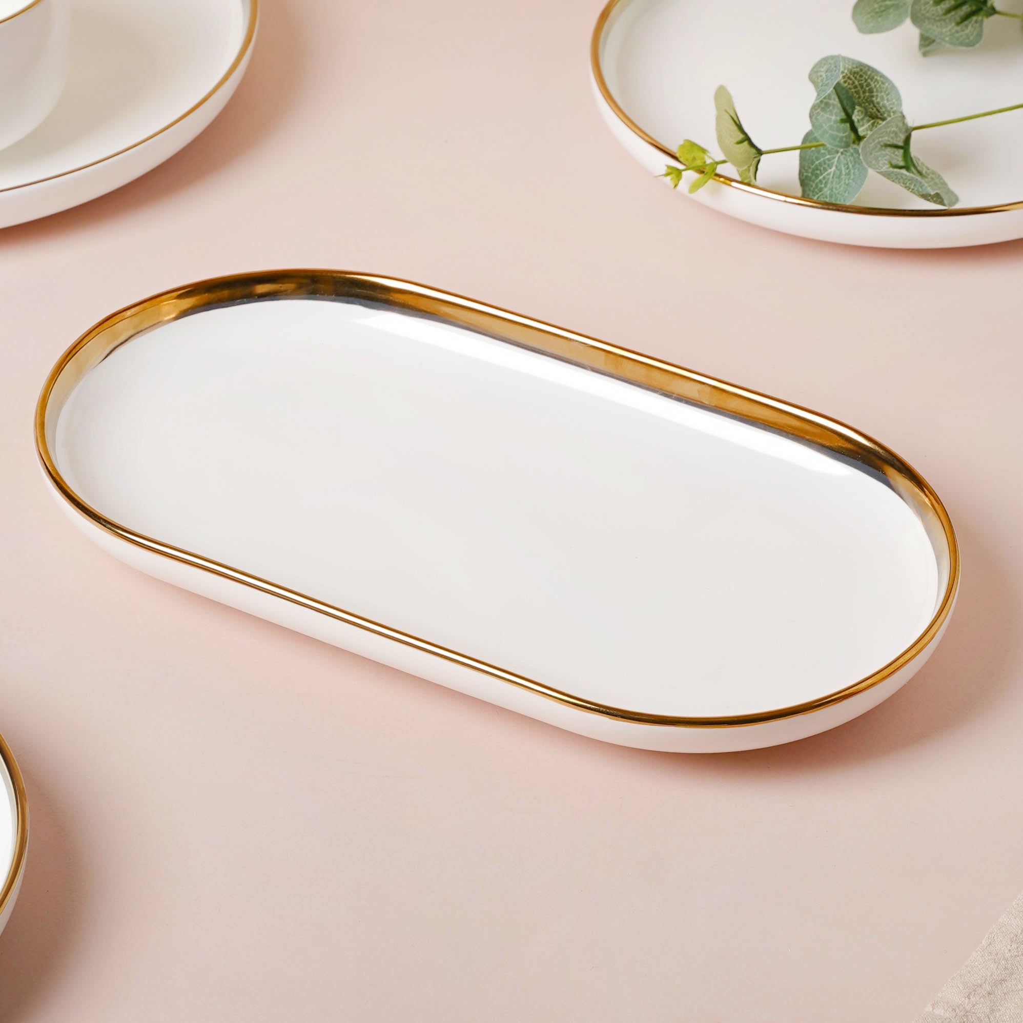 A versatile serveware collection is always in great demand. Ceramic bowls, plates, and dinner sets are an evergreen trend in the world of crockery. Our Vera ceramic plates, ceramic bowls, and ceramic dinner set are brought from the hands and potter’s wheel of the artisans to your dining table. The green, black, pink, and white colored collection is embellished with gold detailing and is handpicked to serve you the best in dinnerware.