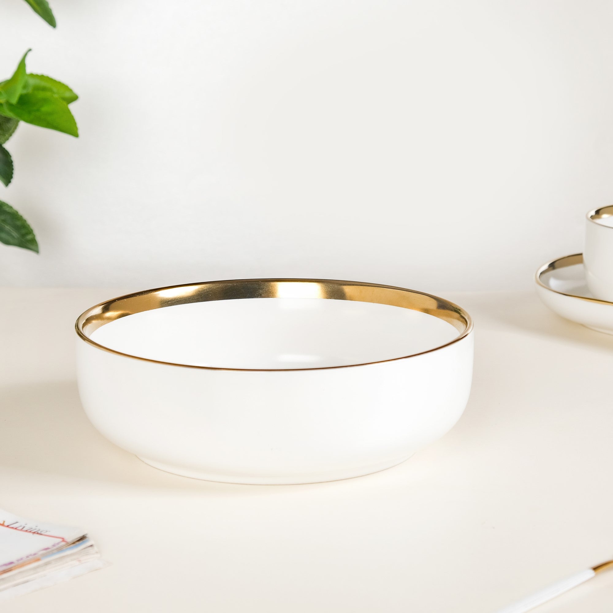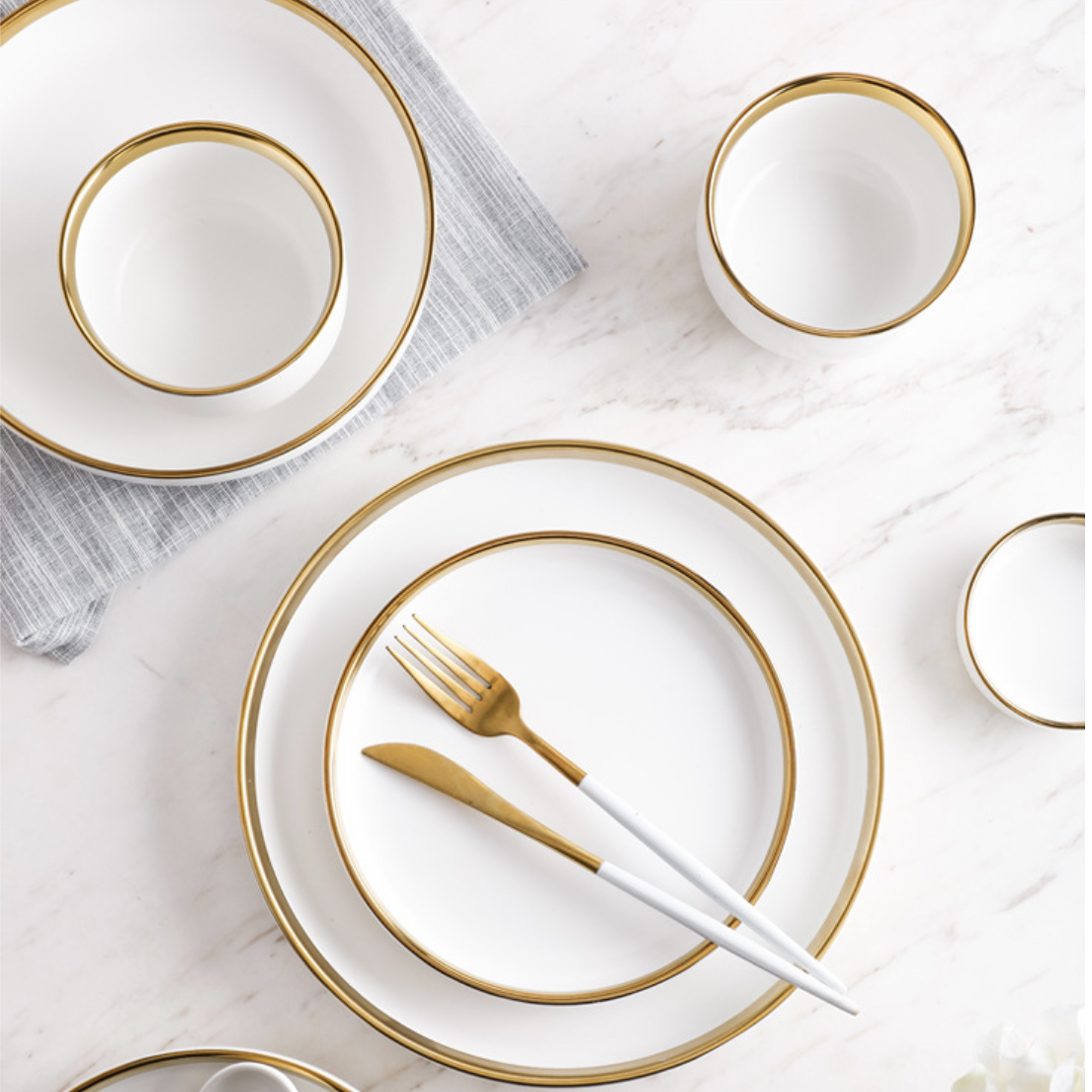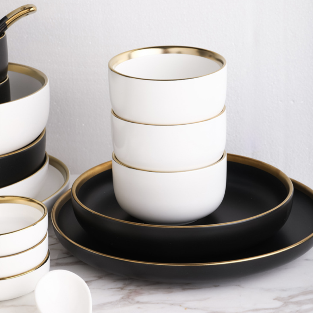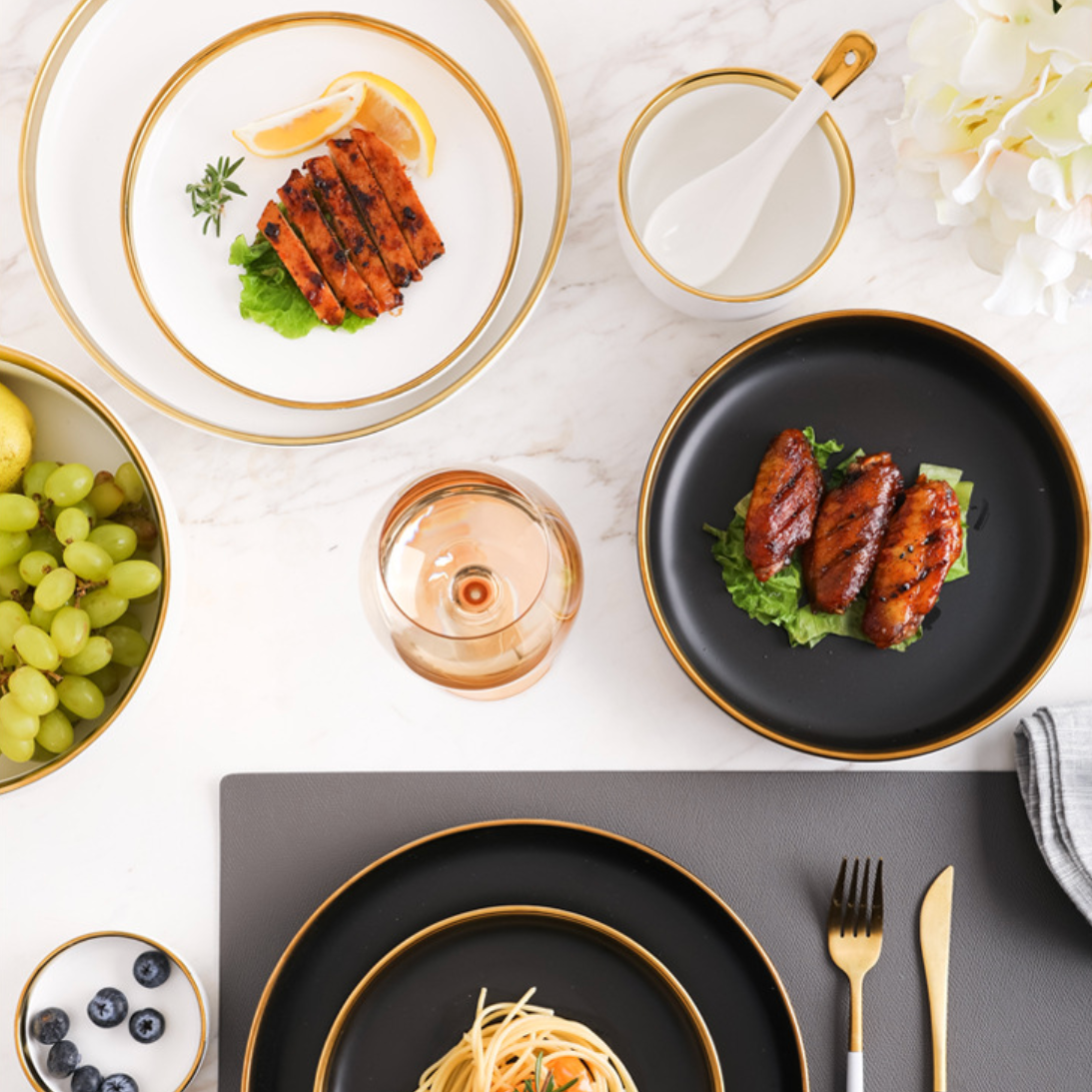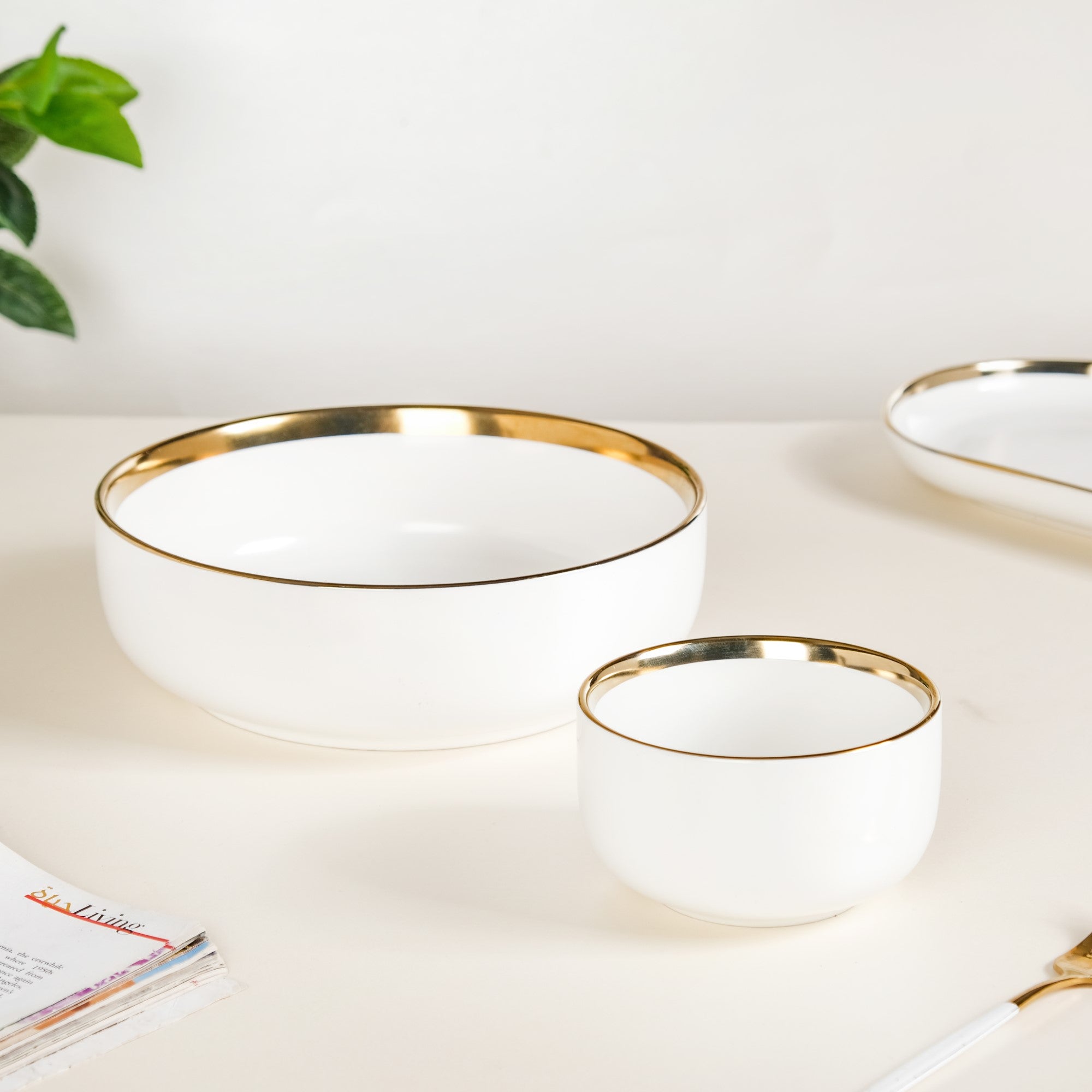 The gold-detailed Vera bowls and plates can be coupled with gold-colored cutlery set from our collection. Our cutlery collection is showcased in the 'Dining' category and gives you tons of options to choose from, be it spoons, forks, knives, pizza cutters, dumpling maker, or anything else you need.