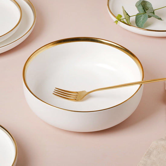 Serve your dishes in the sleek bowls from the VERA collection to uplift the table setup. Crafted of high-quality ceramic, the bowl features a lustrous gold rim for an opulent touch to the bowl's form. Impress your guests by presenting your delicious home-cooked meals in the bowls.
