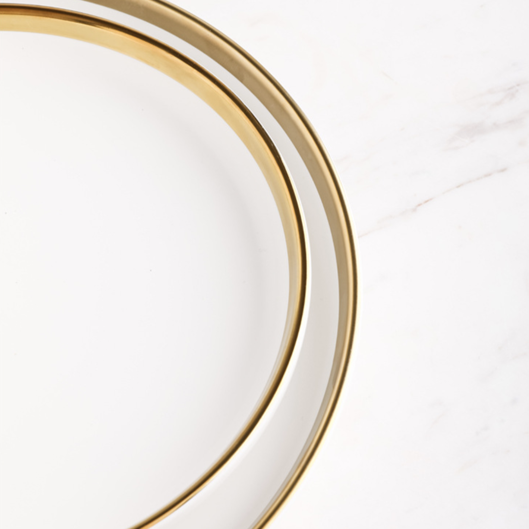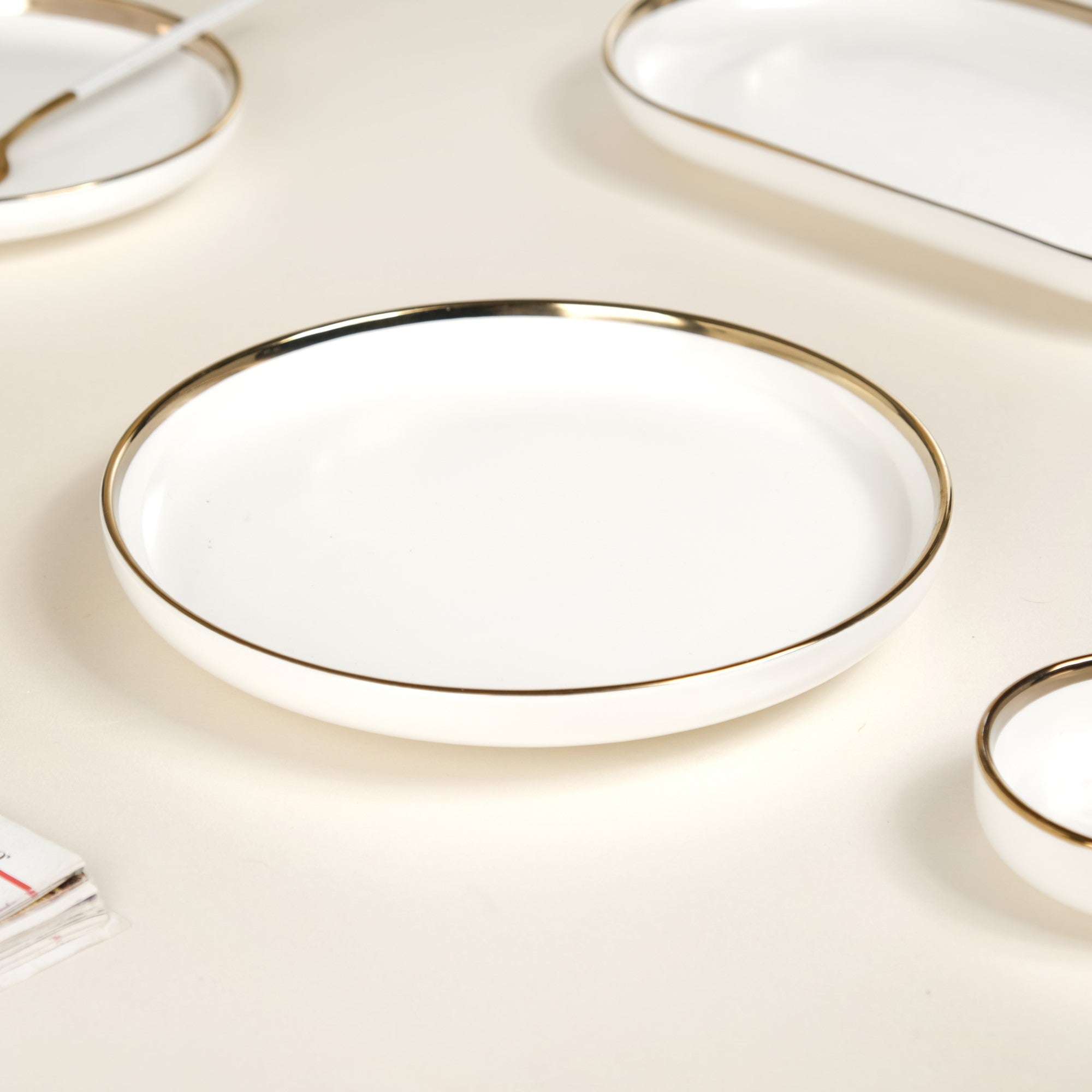 The gold-detailed Vera bowls and plates can be coupled with gold-colored cutlery set from our collection. Our cutlery collection is showcased in the 'Dining' category and gives you tons of options to choose from, be it spoons, forks, knives, pizza cutters, dumpling maker, or anything else you need.
