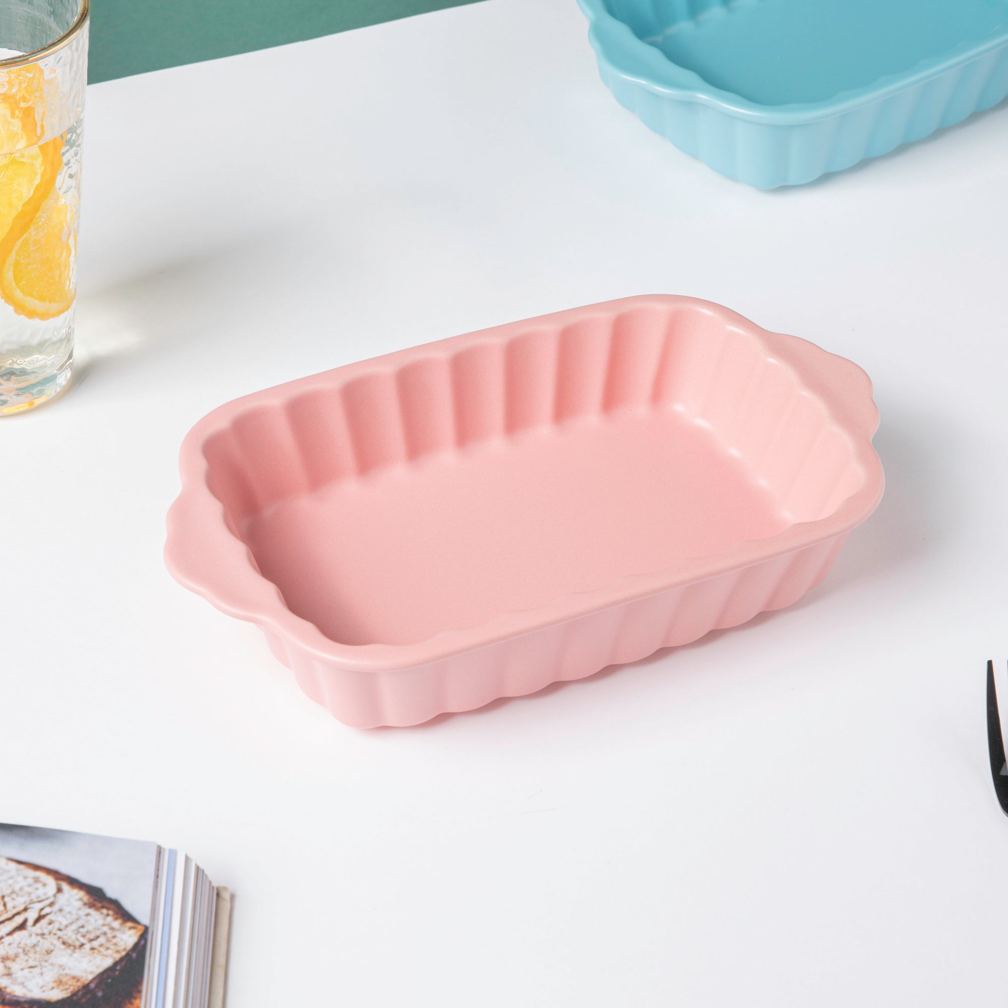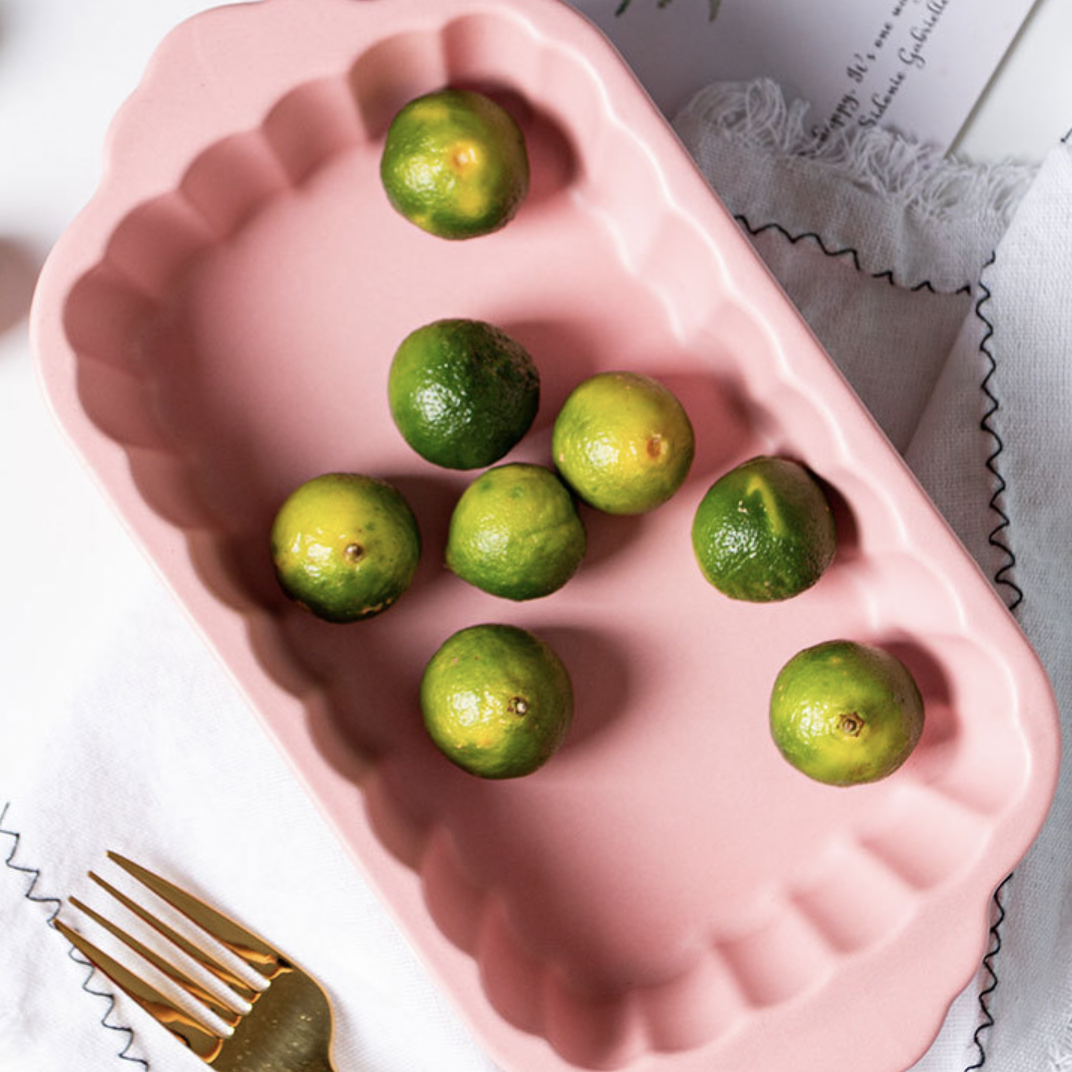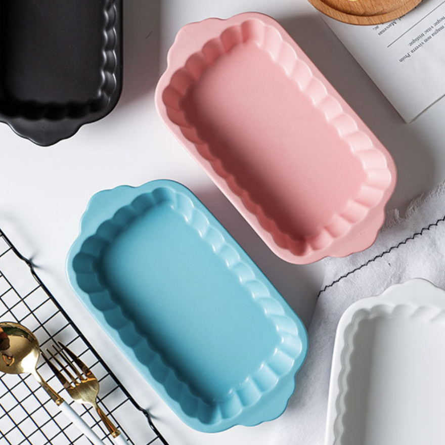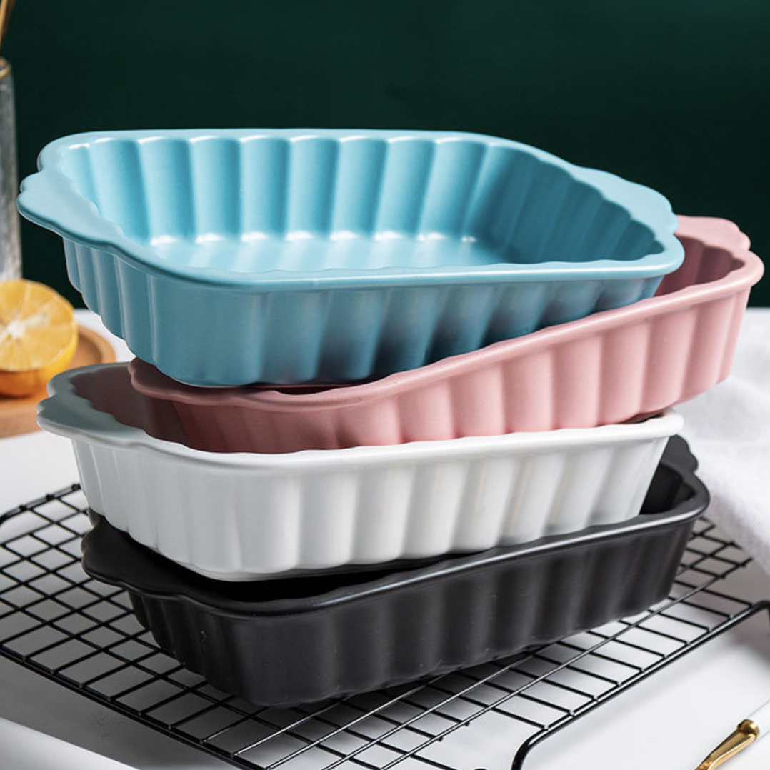 The multi-functional crinkled pink rectangle baking dish may be used for baking, grilling, and serving fruits, veggies, and snacks, among other things. It's simple to grasp while it's heated because of the two flared sides. It's simple to clean, as well as sturdy, long-lasting, and corrosion-proof. The pink ceramic bakeware with handles may also be used to serve gravy or lentils at the dinner table, as well as bake cookies, biscuits, and desserts. It's also good for lasagna and cannelloni baking.