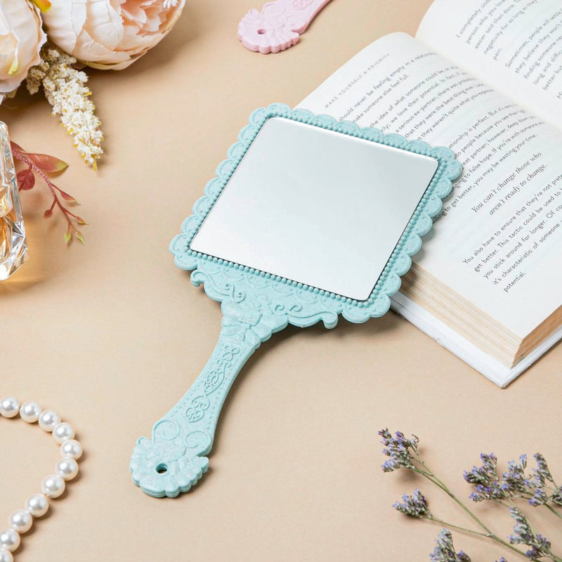 The sleek and stylish, hand-held mirror is the perfect accent to the vanity. The mirror has an elegantly shaped handle that makes it easy to hold at the desired angle and provides a comfortable grip. The adorable hand-held mirror is the ideal accessory to bring with you wherever you go because of its remarkable clarity and portability. Because of its portability and light weight, the mirror is perfect to be carried on the go.