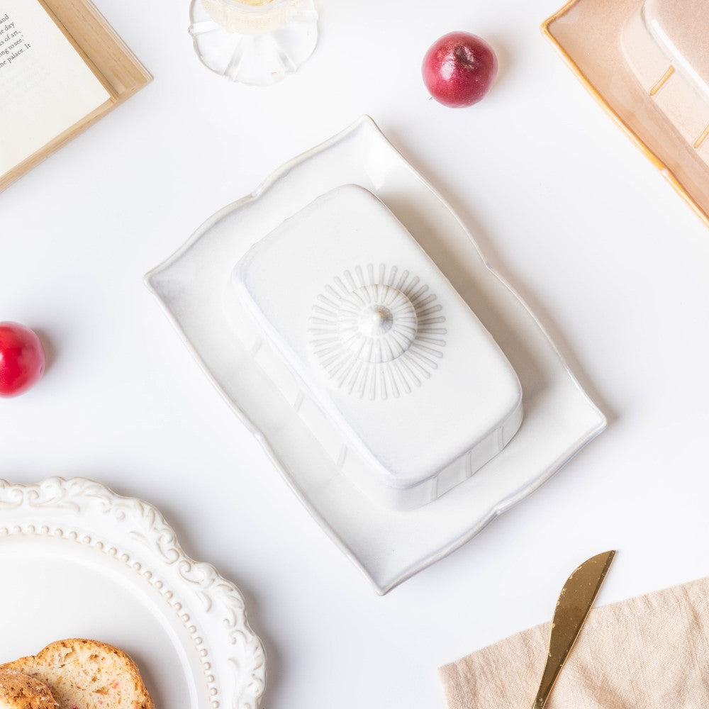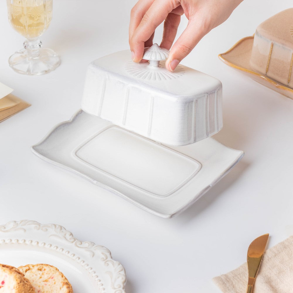 The vintage butter plate is highlighted with an elegantly designed lid. The lid of the white butter dish has been exquisitely designed with a knob to easily lift the lid. The ceramic surface is smooth and delicate, which will lend a gorgeous appearance to the table. It is a great choice for personal use or as a gift. Nestip: The glazed ceramic vintage butter dish can be a great gift for Mother's Day. Size: Plate- 18cm L x 13cm B x 2.5cm H Lid- 13cm L x 8cm B x 8cm H Colour: White Material: Ceramic Products included: 1 butter dish Style: DBAC110T134