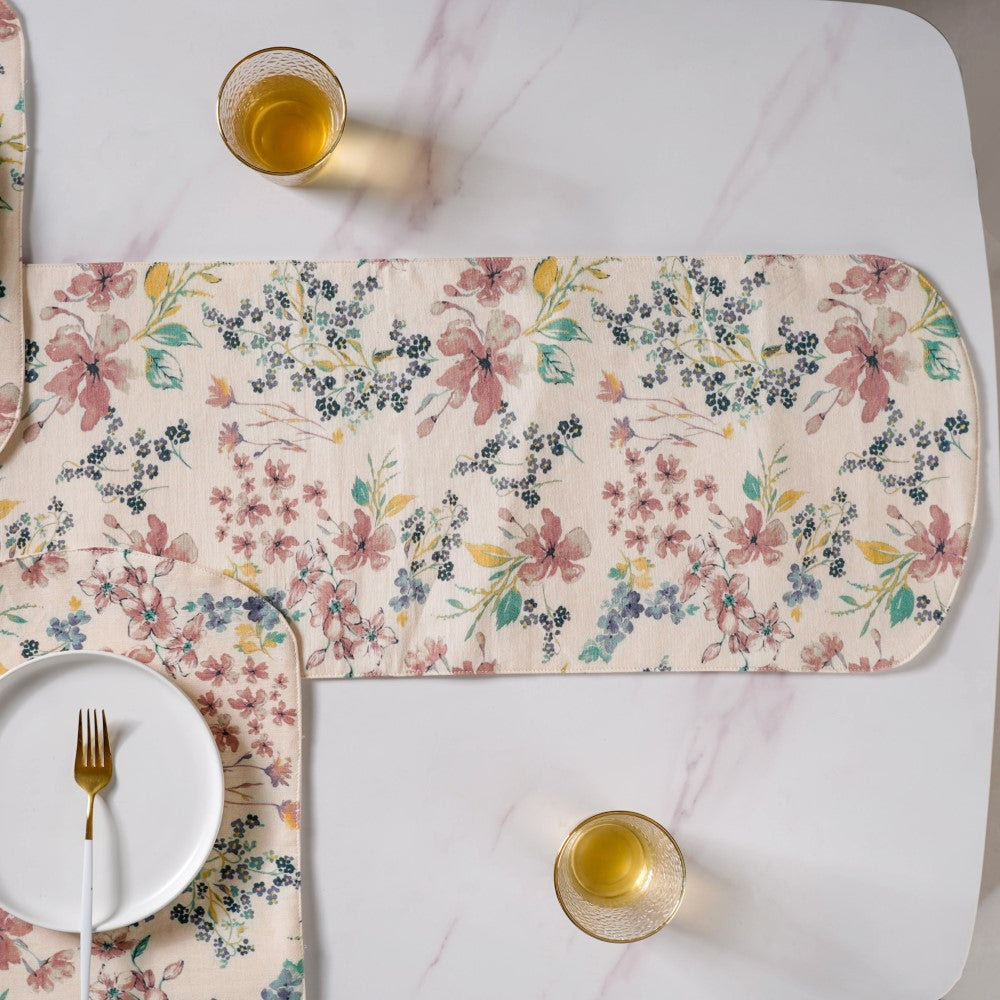The dining table runner that features an exquisite flower-patterned surface will not only protect the dining table from heat, scratches, and stains but will also liven up the dining room's decor setup. The long table runner is extremely simple to set, pick, wash, and store. With delicate flowers and leaves resembling water-colour art, the dining table runner beautifies the dining ambience. The cotton table runner acts as the perfect base to place hot utensils or decorative centrepieces.