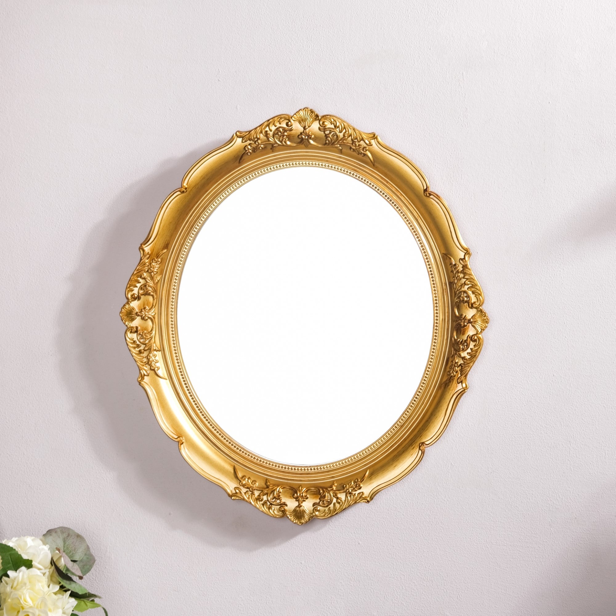 Introducing the epitome of opulence and style with our decorative vintage wall mirror. This extraordinary decorative masterpiece transcends the ordinary, mesmerising all who gaze upon it. Crafted with meticulous attention to detail, its retro-inspired gold frame boasts intricate patterns that exude timeless beauty. Immerse yourself in luxury as this framed mirror becomes the centrepiece of your space, effortlessly blending with any aesthetic. Whether adorning your living room, bedroom, or hallway, this vanity mirror elevates the ambience, reflecting sophistication and elegance. Prepare to be enchanted by our decorative mirror, the ultimate embodiment of a refined and captivating room mirror.