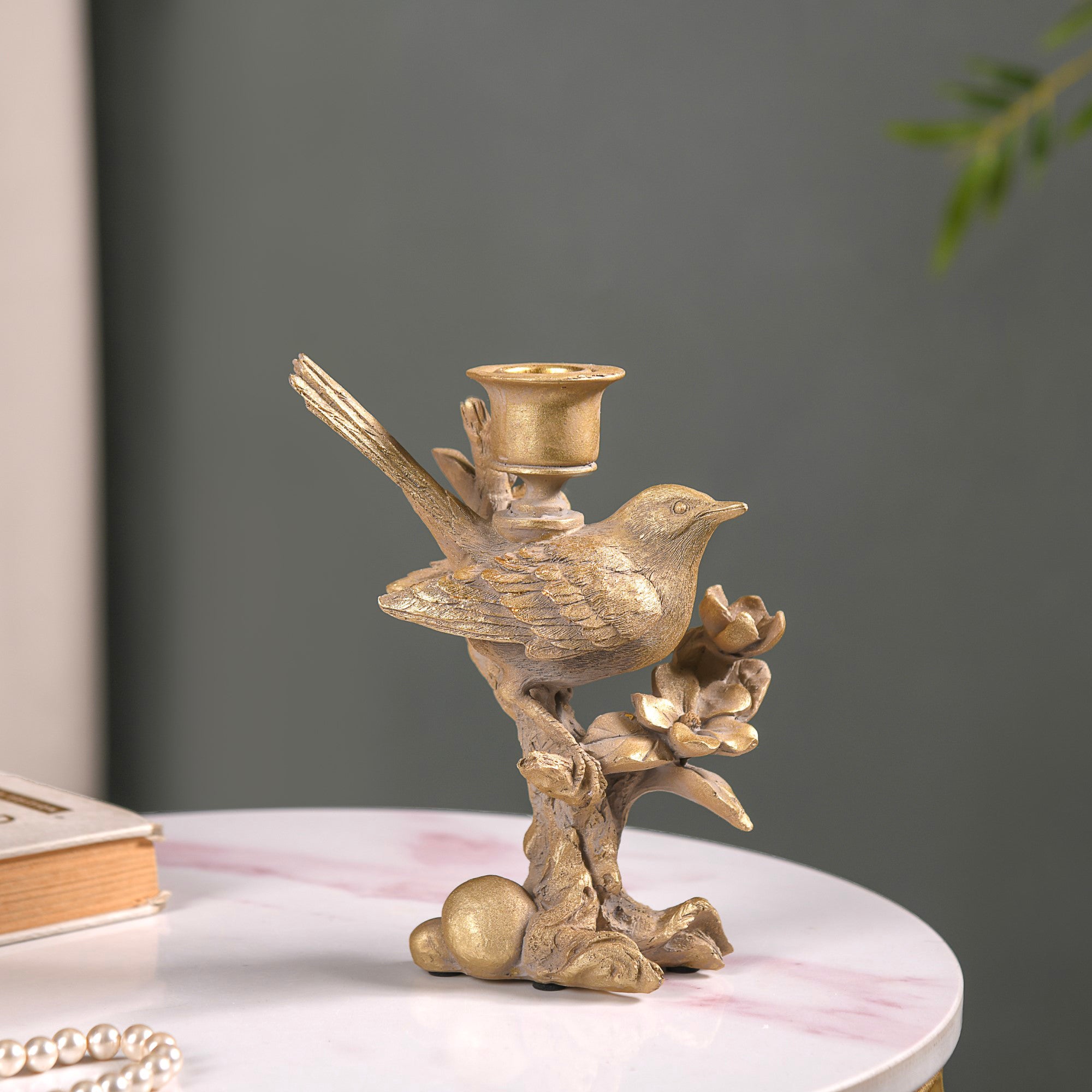 Yes, the resin candle stand's metallic gold finish is intentionally crafted for long-lasting durability and resistance to tarnishing or fading. With proper care and maintenance, this finish retains its radiant sheen over time. Regular dusting with a soft, dry cloth and avoiding harsh cleaning agents or abrasive materials preserves its lustrous appearance.