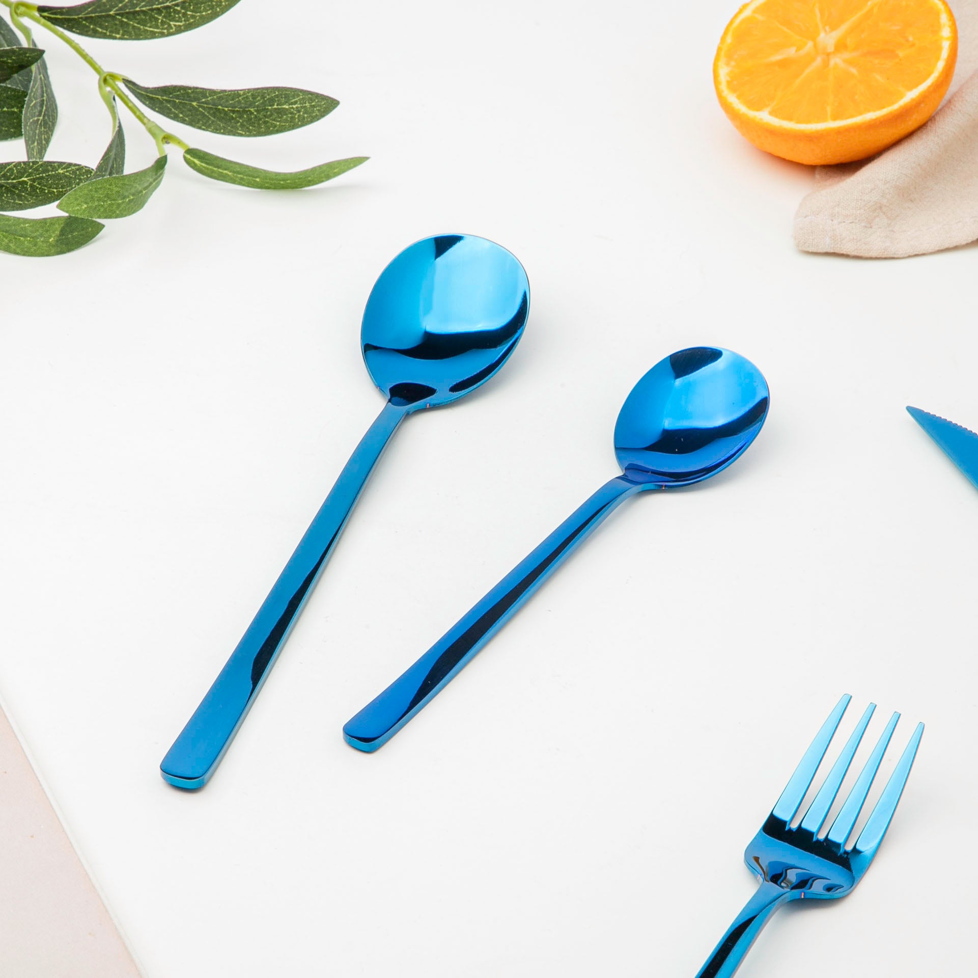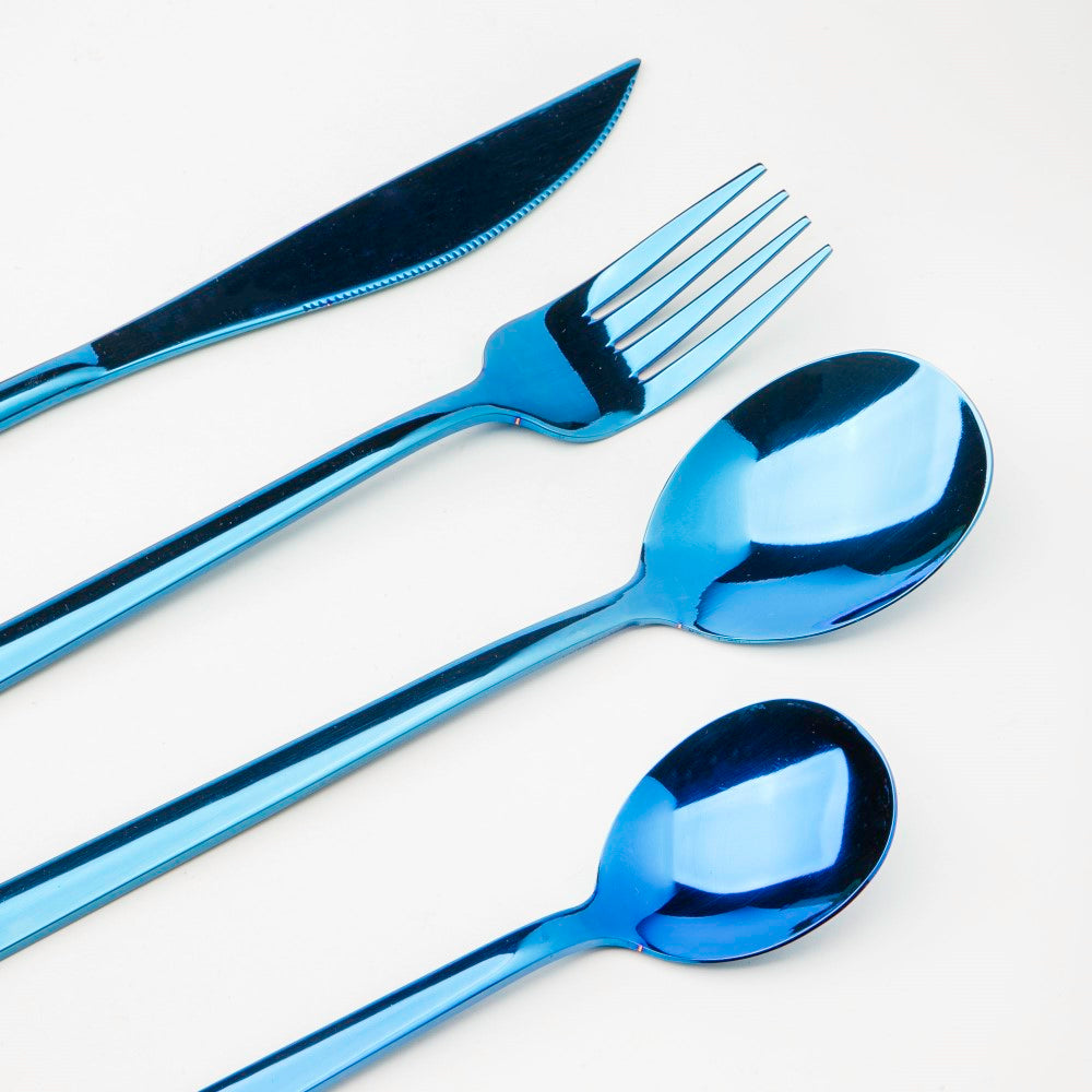Steel cutlery set which comes in a vibrant blue colour will effortlessly brighten the table top. The kitchen essentials set comprises of one fork, one small spoon, one big spoon and a fork. The material of the cutlery is extremely sturdy and of high quality, so it is long-lasting and durable. Create aesthetic table set ups using the colorful range of cutlery.