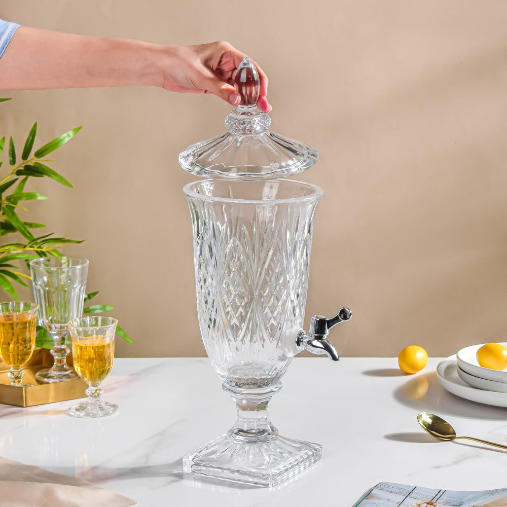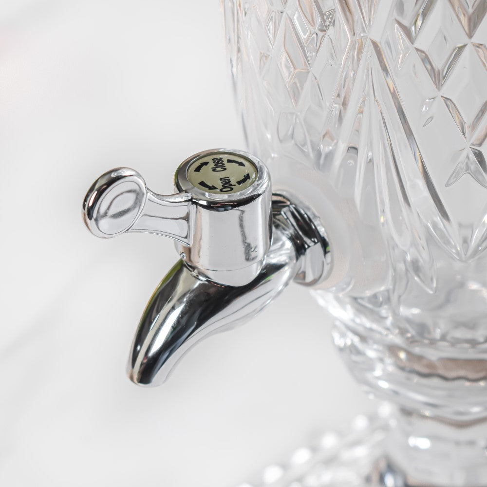 While the dispenser itself is sold separately, it can be beautifully paired with matching glasses. You can choose our crystal translucent wine glasses, which match the cut-glass texture and vintage look of the dispenser. These glasses help complete the serving set, creating a coordinated and elegant drink station for any occasion. Whether you’re serving juice, punch, or flavored water, the matching glasses add a touch of style and make your table setup look polished and thoughtfully put together. It's a great way to impress your guests.