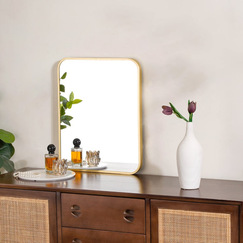 The sleek design and the shimmering golden finish of the rectangular mirror make it so much more attractive than any ordinary bathroom mirror. The golden mirror frame can offer a luxurious look to a plain and monotonous room decor style. The rectangular large wall mirror can add a touch of elegance and golden charm to any home decor while serving its basic utilitarian benefits, from makeup to dress-up. The rectangular mirror can also be perfect for gifting.
