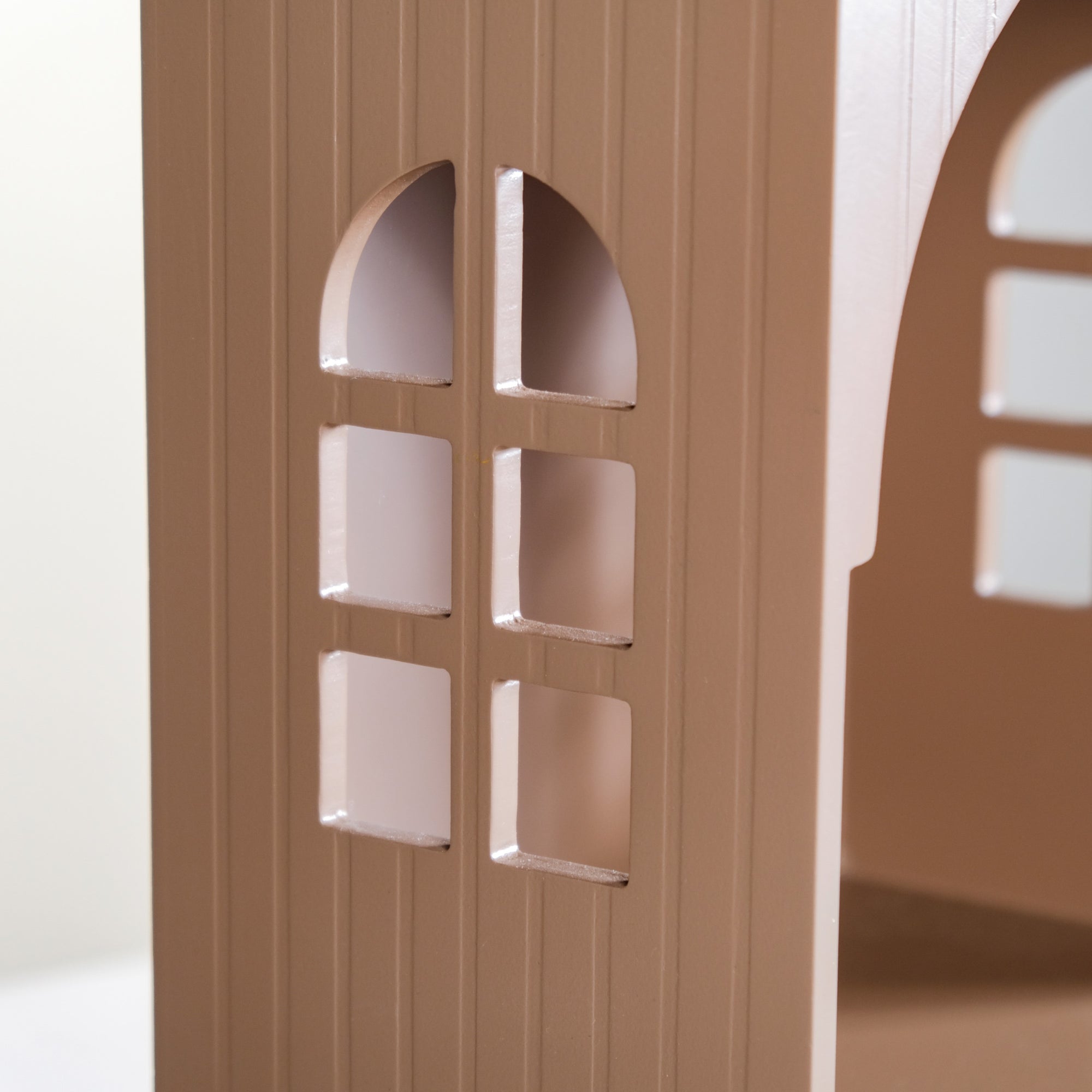 Design: This MDF home temple features a solid structure with a deep brown finish that lends a warm, earthy tone to your pooja setup. The brown finish is versatile and understated, complementing both minimalist and traditional home styles. The curved arch front adds a classic touch, while the side cut-outs create a gentle play of light. A spacious pooja area accommodates idols, diyas, and accessories comfortably. The pull-out drawer neatly stores incense sticks, cotton wicks, and prayer essentials. Compact and sturdy, it fits easily into both modern and simple interiors. Two holes on the back ensure that the mandir can also be wall-mounted.