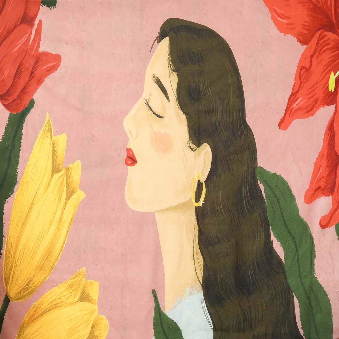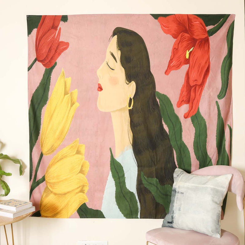 The girl with flower tapestry is made of canvas cotton, which is environmental-friendly, durable, soft, lightweight, and fadeless. Available for both indoor and outdoor use, the tapestry wall hanging has a serene feel to it. The fabric will feel comfortable to the skin and can hence be placed on the couch. Use the beautiful home decor piece as a tapestry, wall hanging, or bedspread. The subdued color tones add a calming touch to the neat design of the wall tapestry.