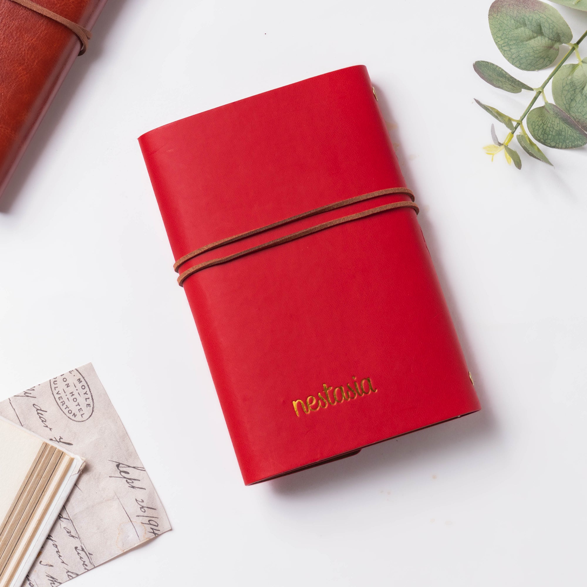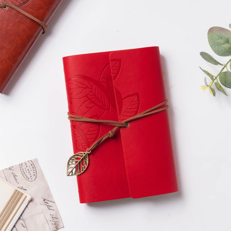 Wanderlust Leather Journal With Leaf Tassel Red 75 Pages
