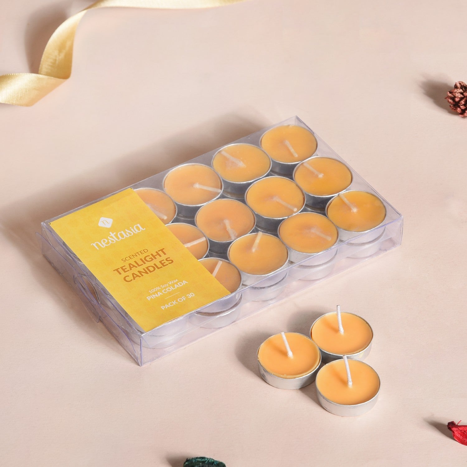 Set Of 30 Pina Colada Fragrant Tealight Candles |