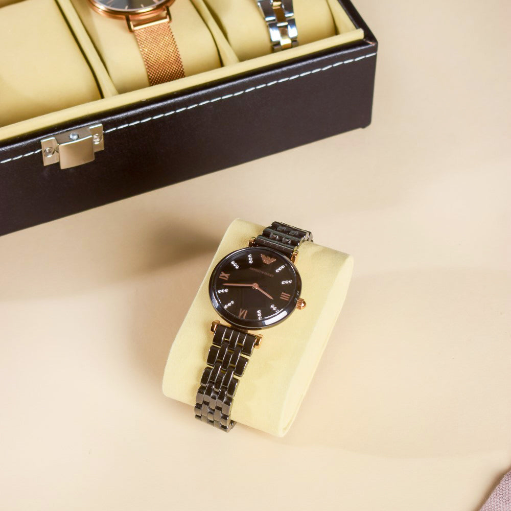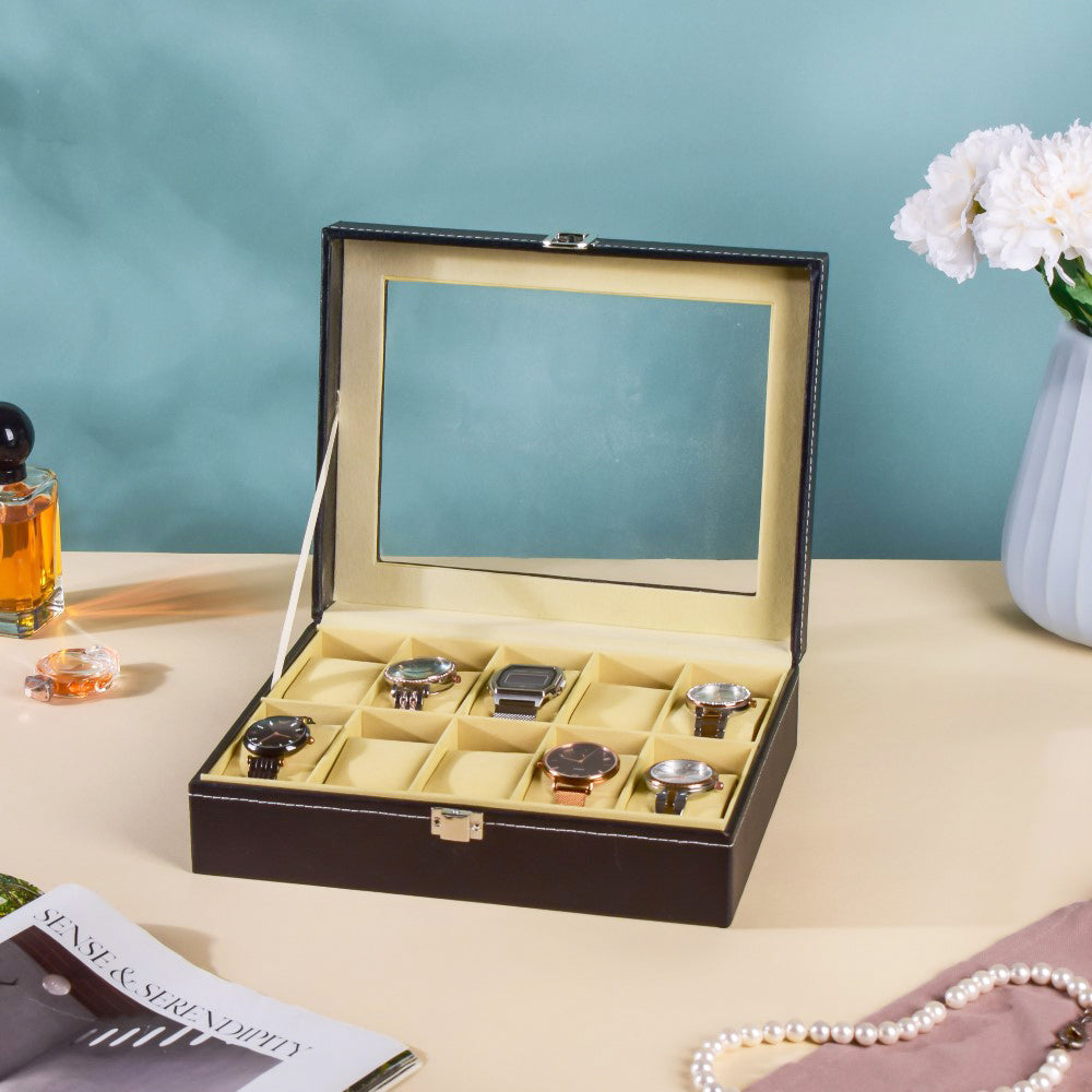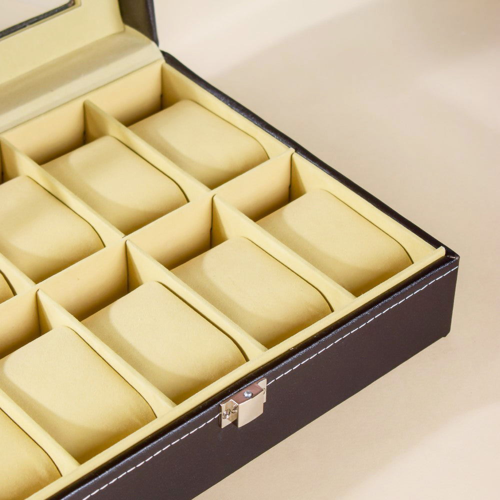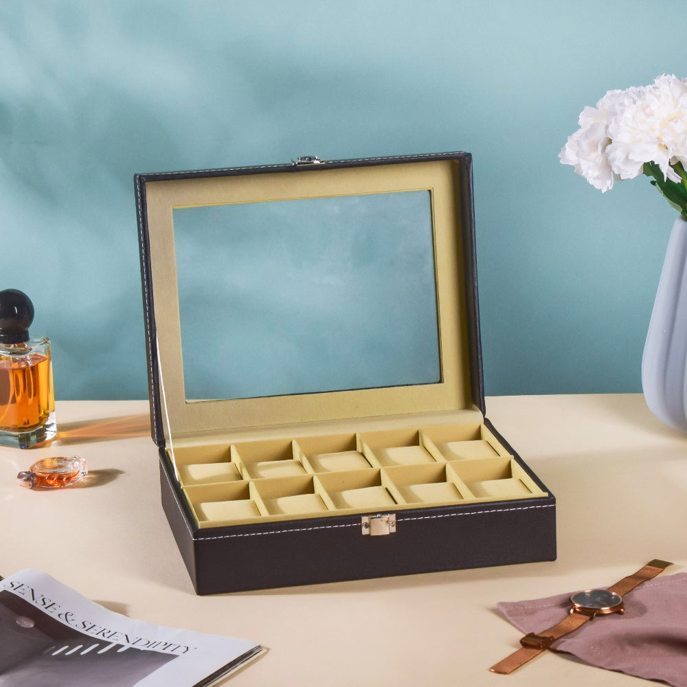 mahesh motla Watch Box Holder With 10 Cushioned Slots Black