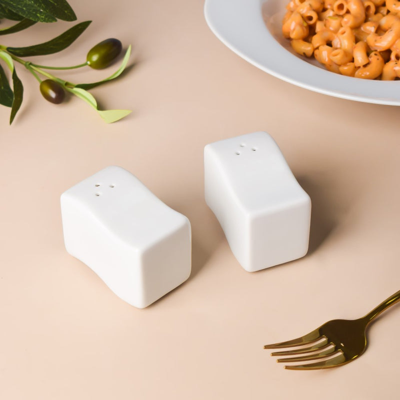 Wavy Ceramic Salt And Pepper Shakers Set White