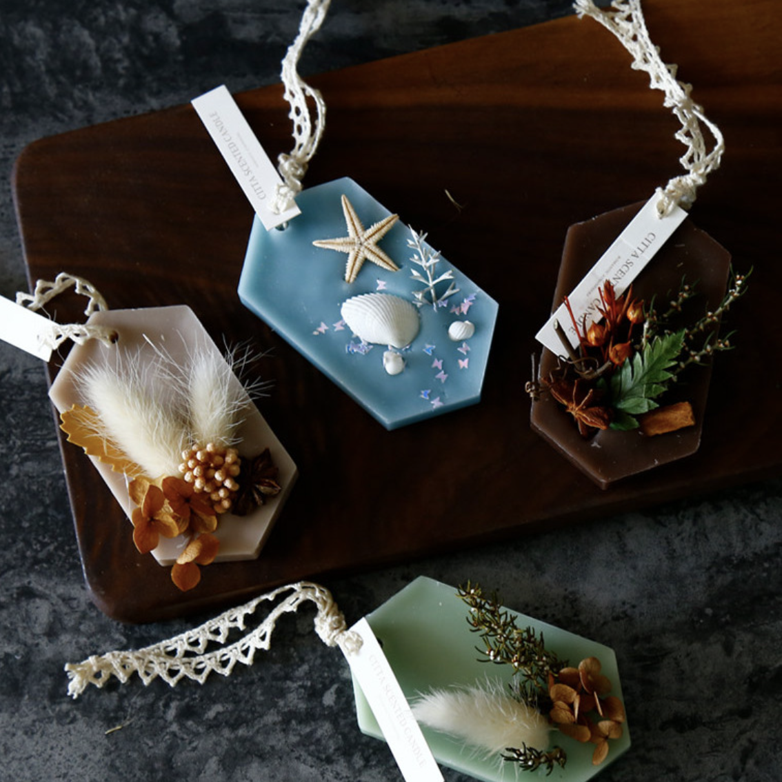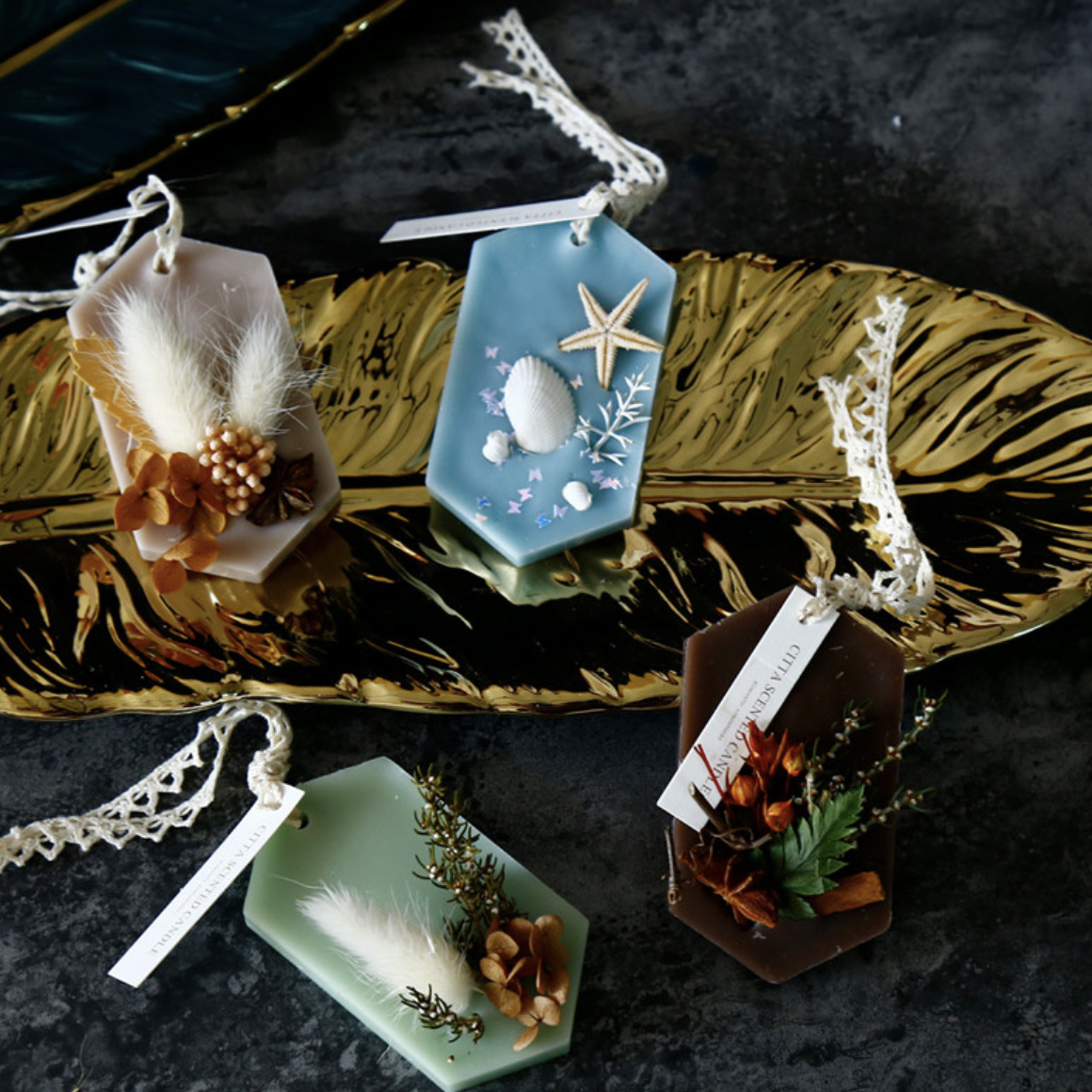 The handmade seashell soy wax air fresheners have a light and soothing fragrance. They can be placed in cupboards, drawers, rooms, bathrooms, office desks, cars and more. With dried leaves and feathers, they create an aesthetic look. They can also be hung on door knobs and inside wardrobe. Nestip: Use the freshener to hang on a door for any room's long term freshness. Size: 9cm X 5cmMaterial: WaxColor: Brown, blue, beige, white and greenItems Included: 1 Wax air freshenerStyle: White - WXNU143Green - WXNU144Blue With Tassel - WXNU145Brown With Tassel - WXNU146Beige - WXNU147Blue - WXNU148White With Tassel - WXNU149Brown - WXNU150
