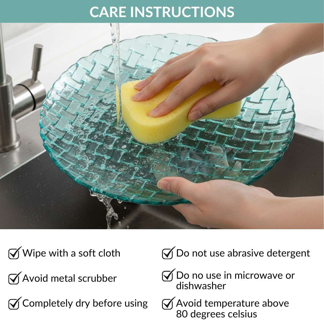 Benefits: The sturdy glass construction ensures long-lasting use, while the textured surface adds a refined touch. These plates are 100% food-safe, easy to clean, and versatile enough to serve everything from main courses to appetisers with ease. Beautifully packed and thoughtfully designed, the plate set also makes a wonderful gift for housewarmings, weddings, or festive celebrations.