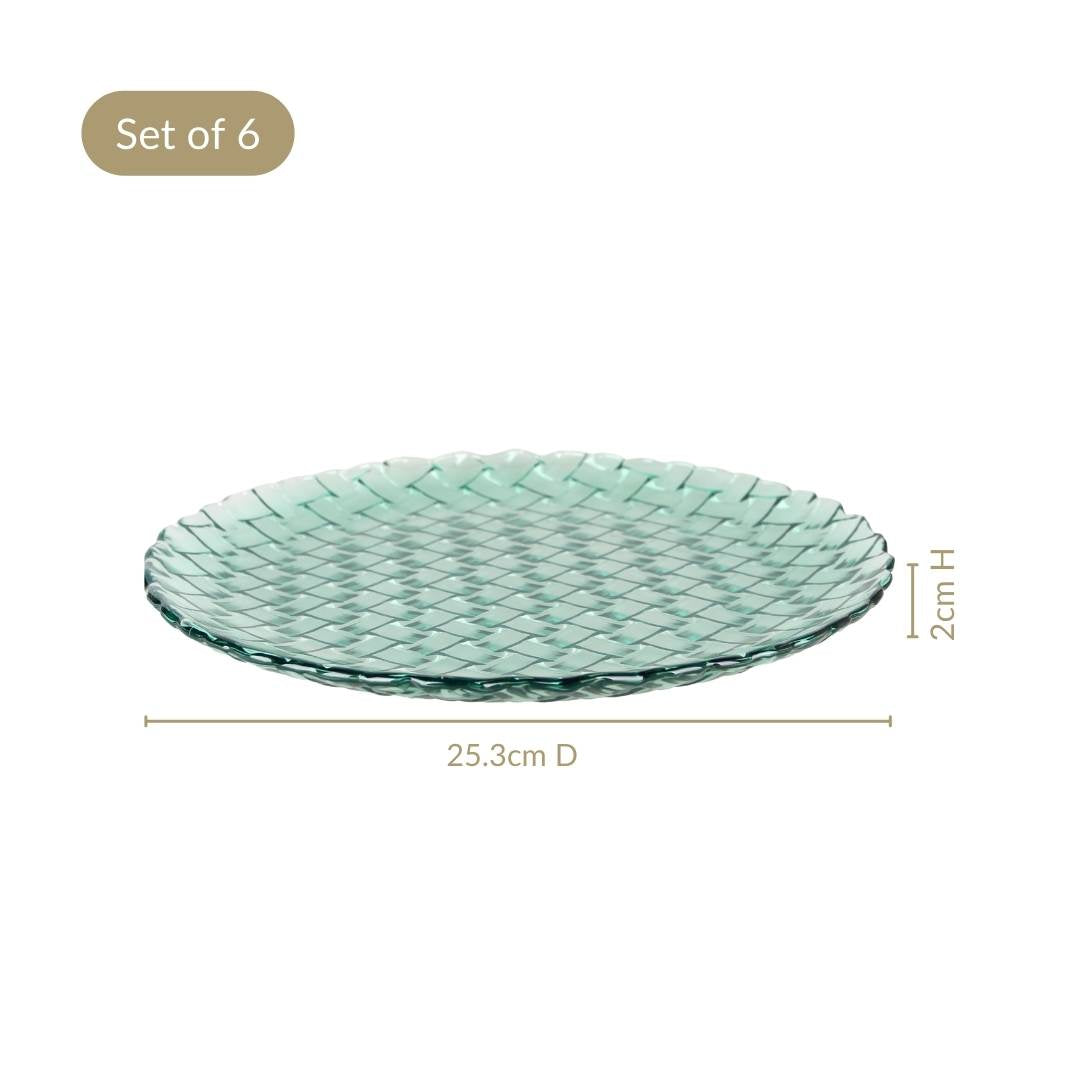 Weave Design Glass Dinner Plate Set Of 6 Teal 25cm
