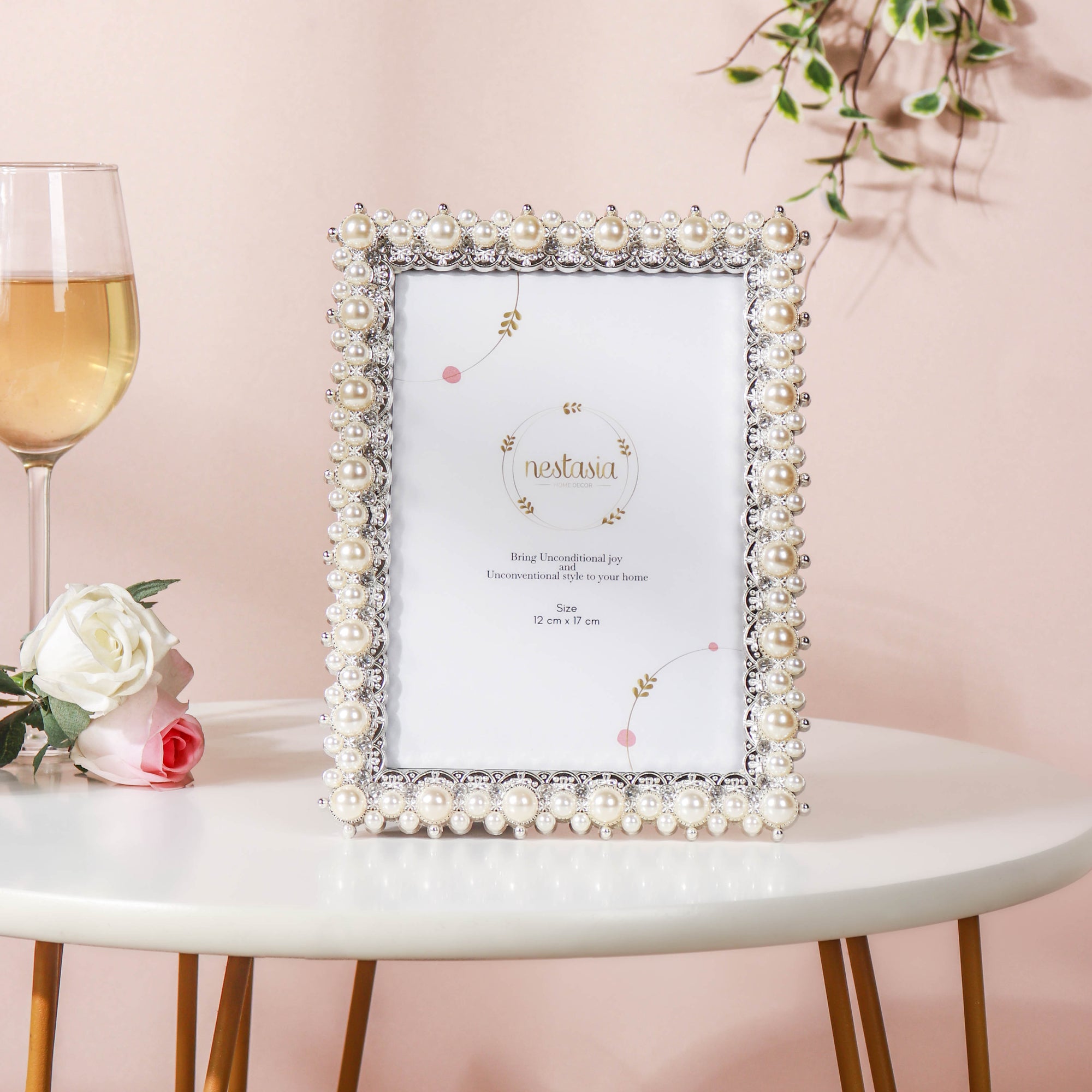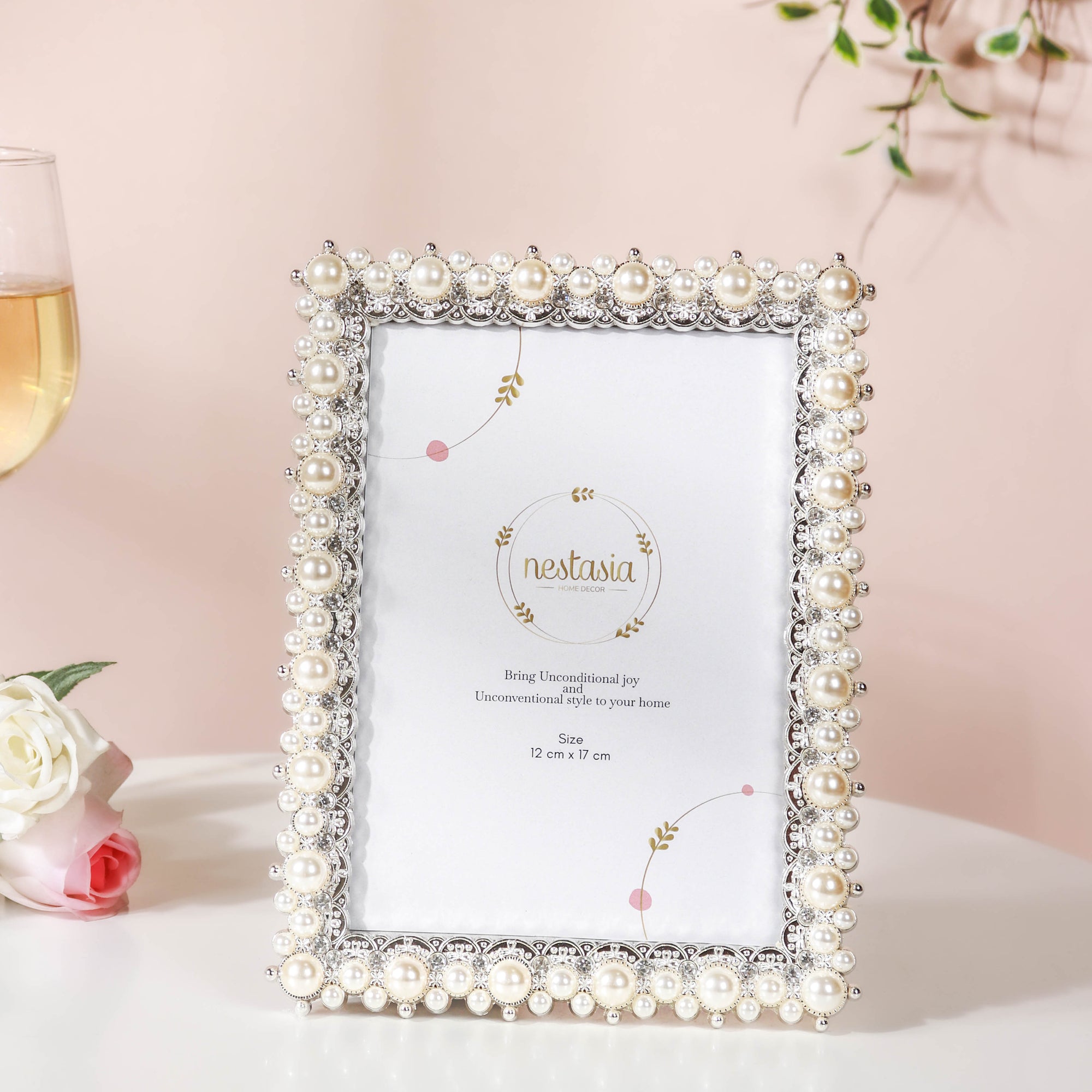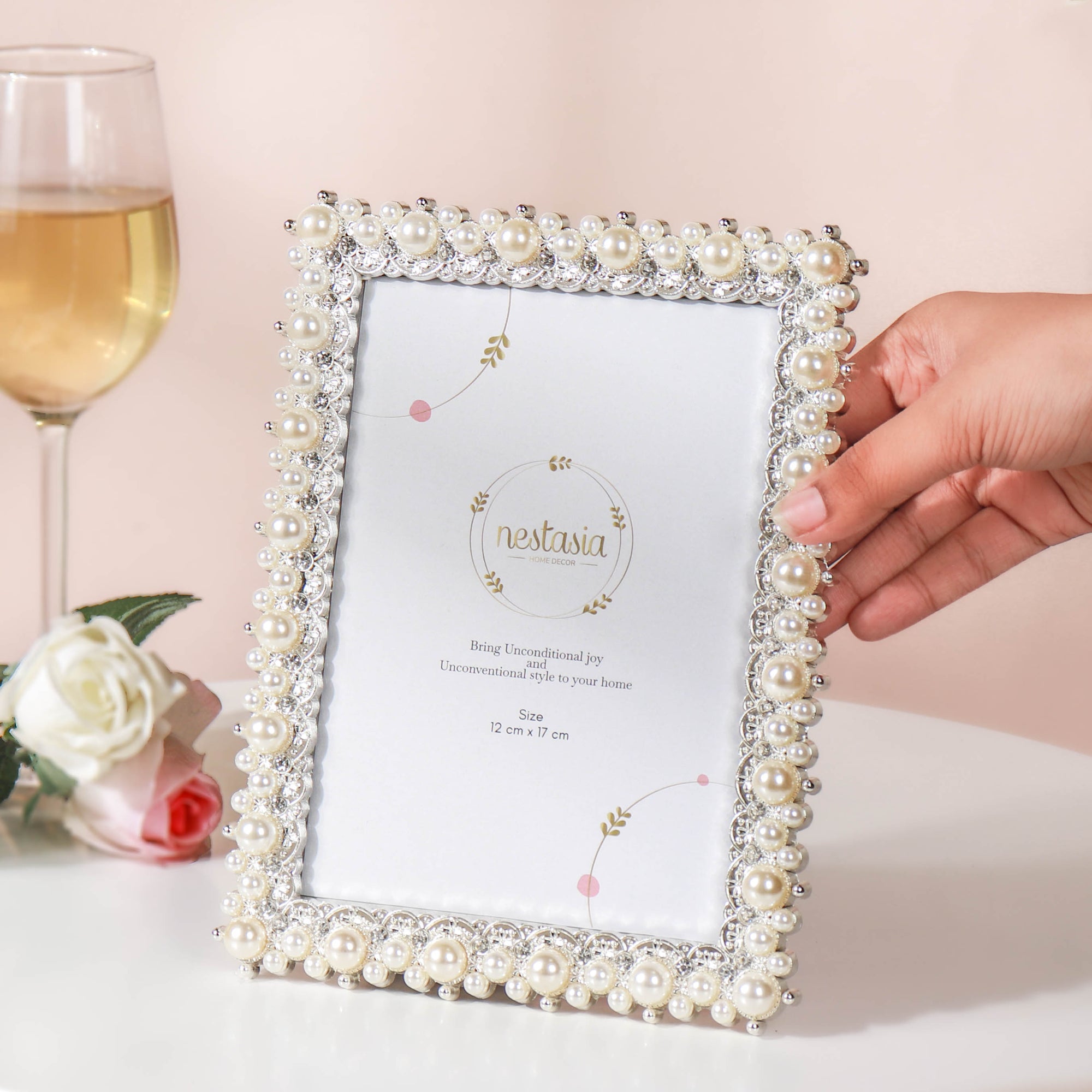 But a long-lasting photo case is required to protect the pictures. One can always trust an artsy, large-sized photo frame here. Motifs in sliver border the edges of the photo frame, bearing pearl-like beads embellished one next to the other. The visually enriching pearls lend a touch of elegance to any formal or informal setting.