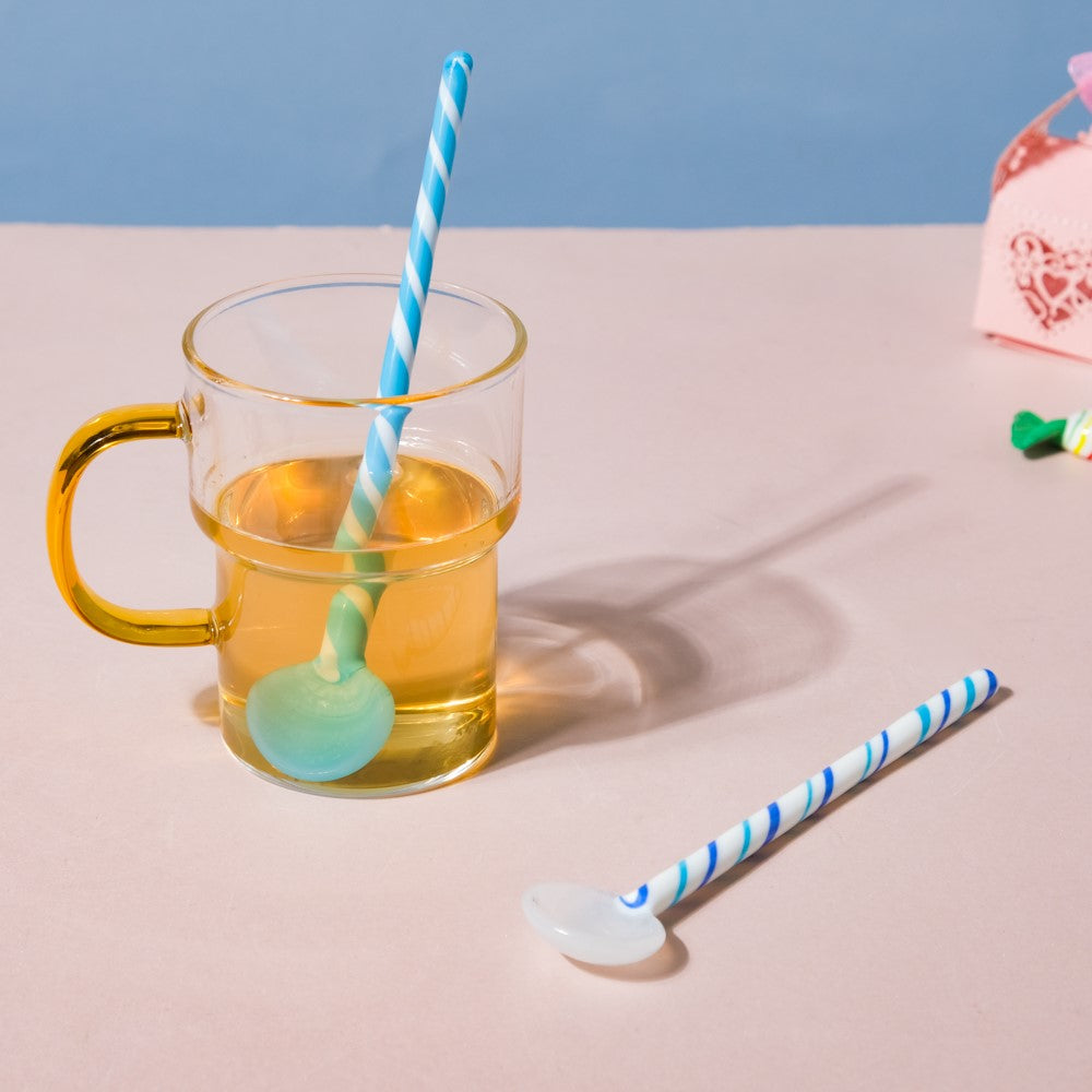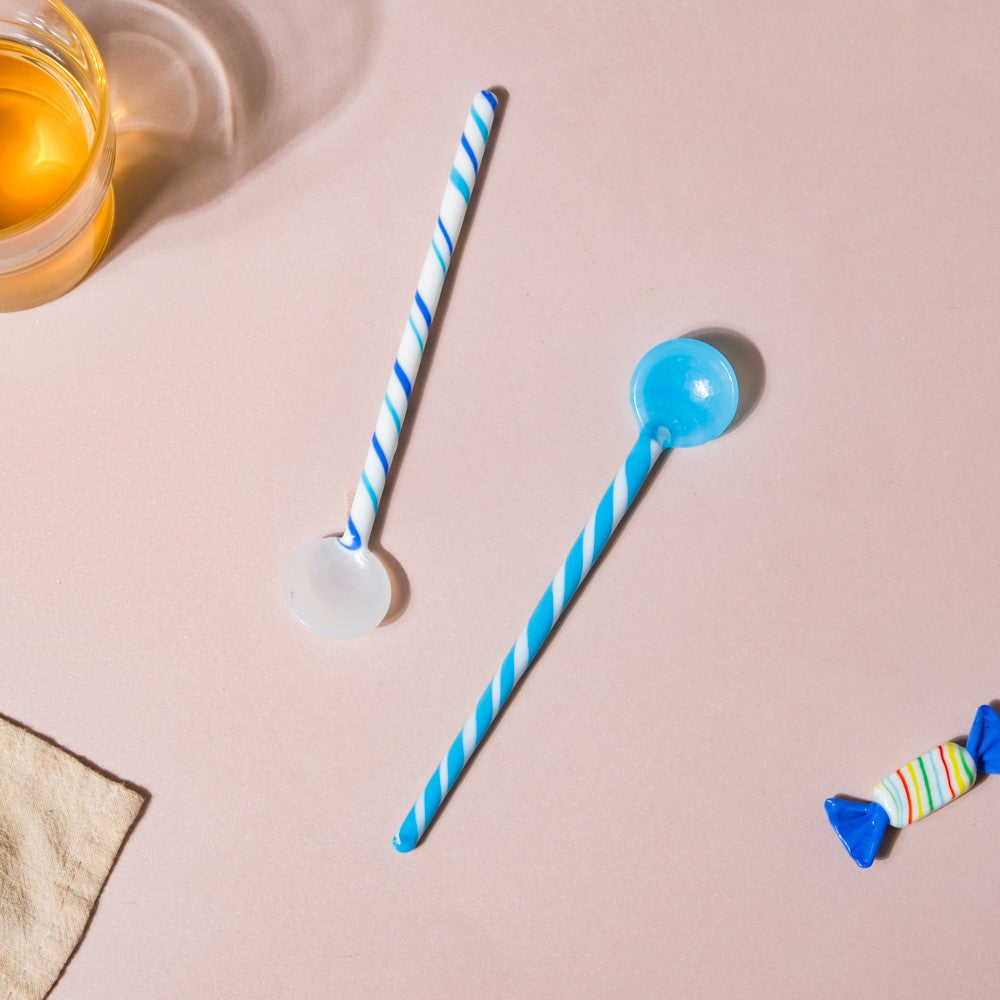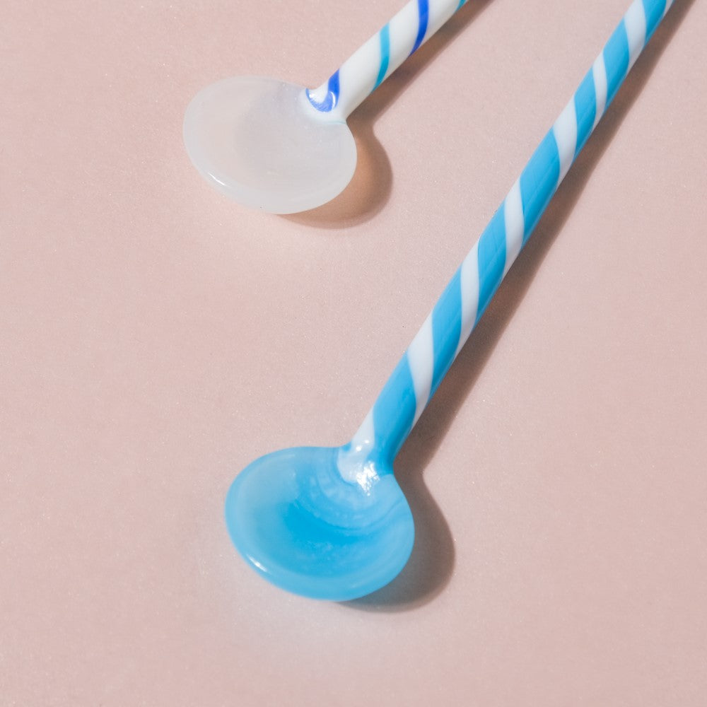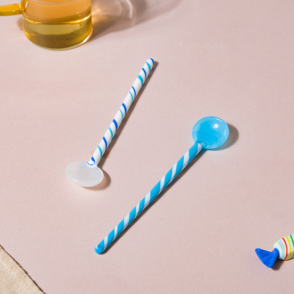 White Blue Glass Spoon Stirrer Set Of Two 6.5 Inch